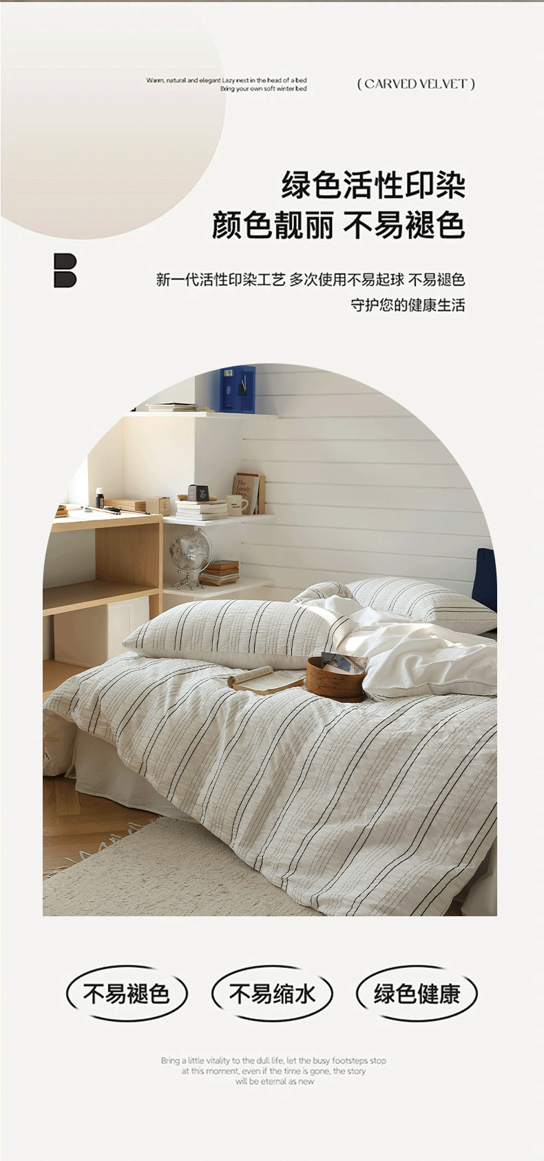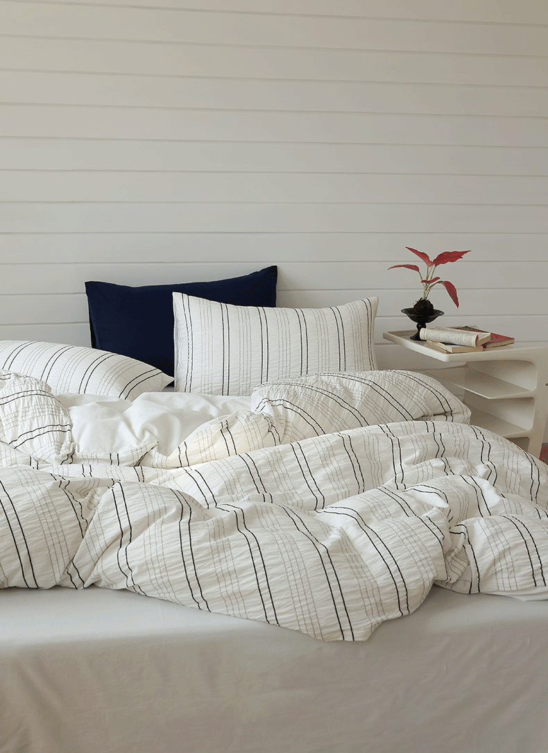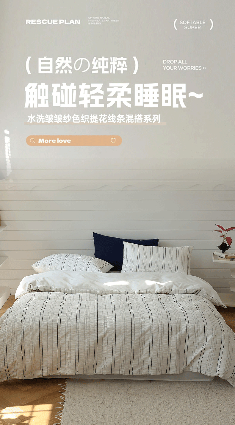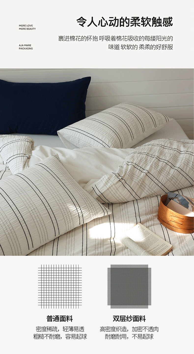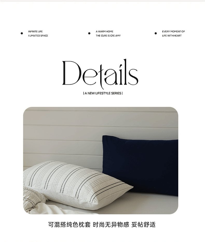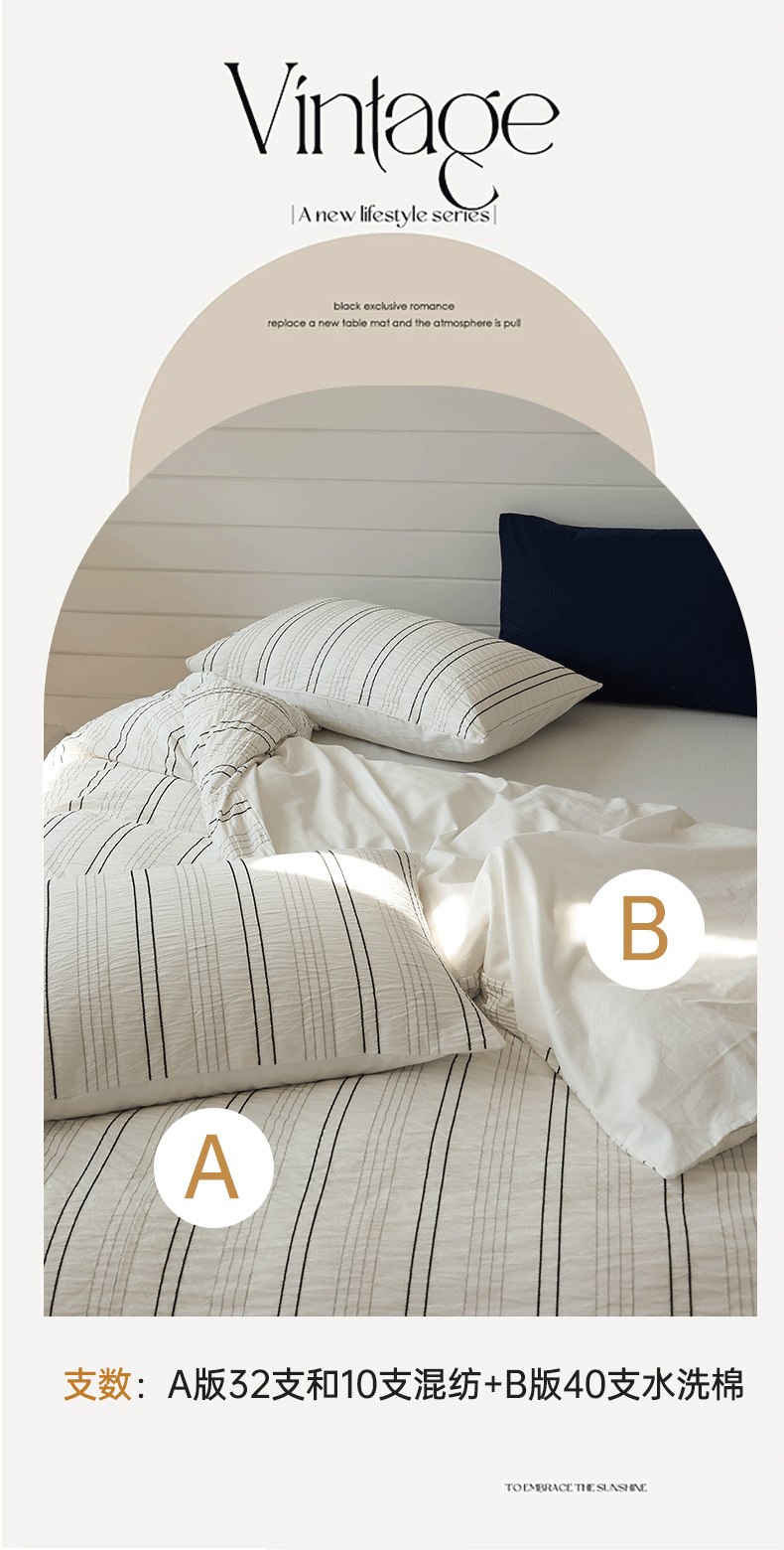 当前位置: 91家纺网 > 商品网购 > 床品套件 > 四件套 > 水洗棉四件套 > 棉眠 2024新款水洗皱皱纱色织提花线条混搭系列四件套 黑灰细条配白