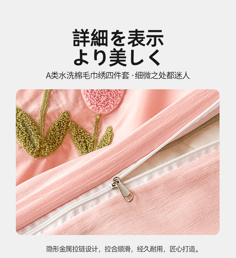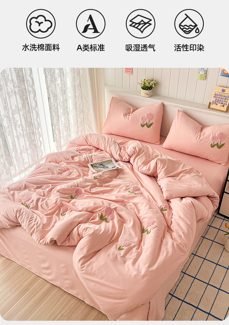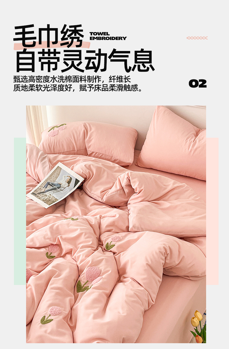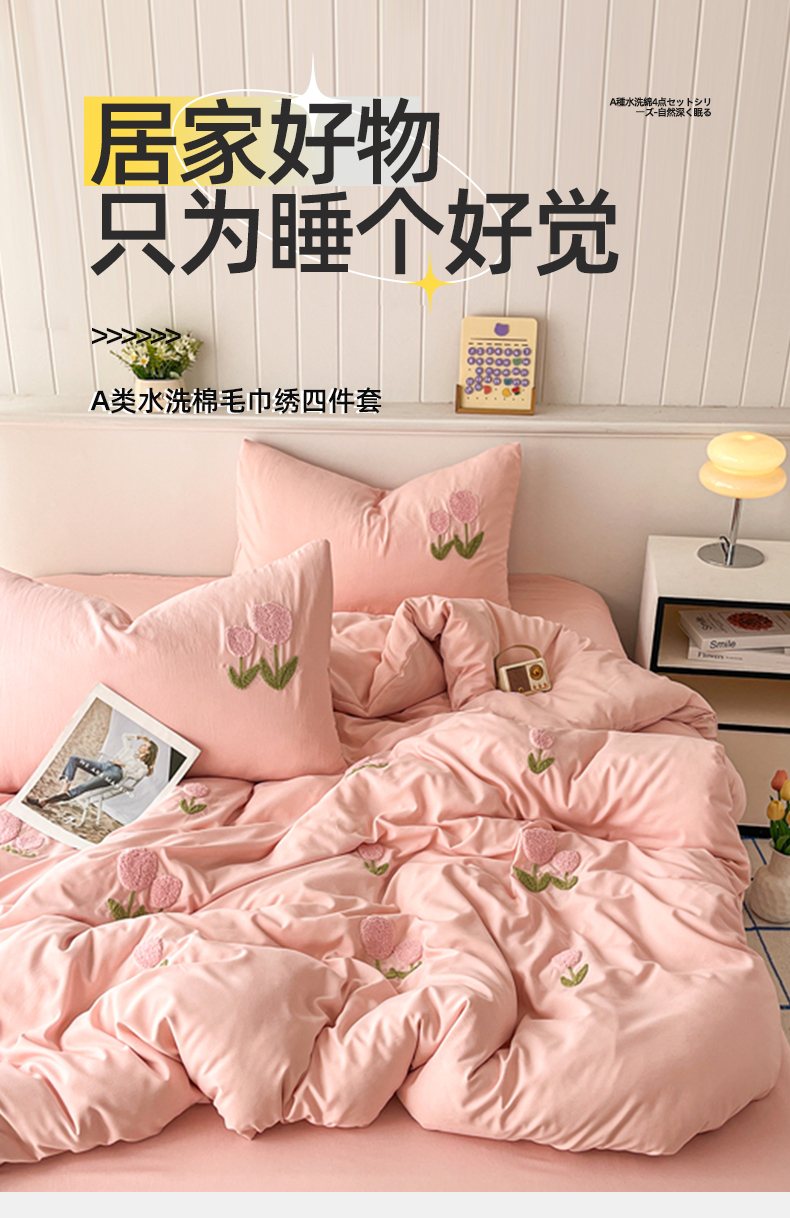 当前位置: 91家纺网 > 商品网购 > 床品套件 > 四件套 > 水洗棉四件套 > 多品家纺 2024新款水洗棉毛巾绣四件套郁见花海 郁见花海 粉+粉