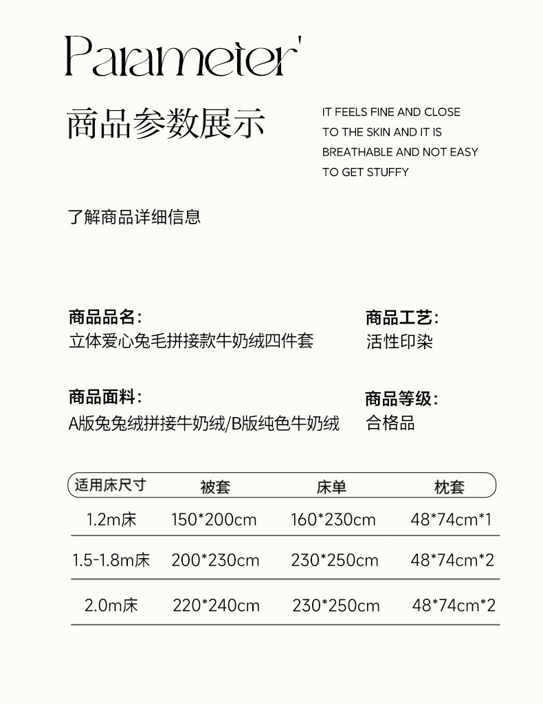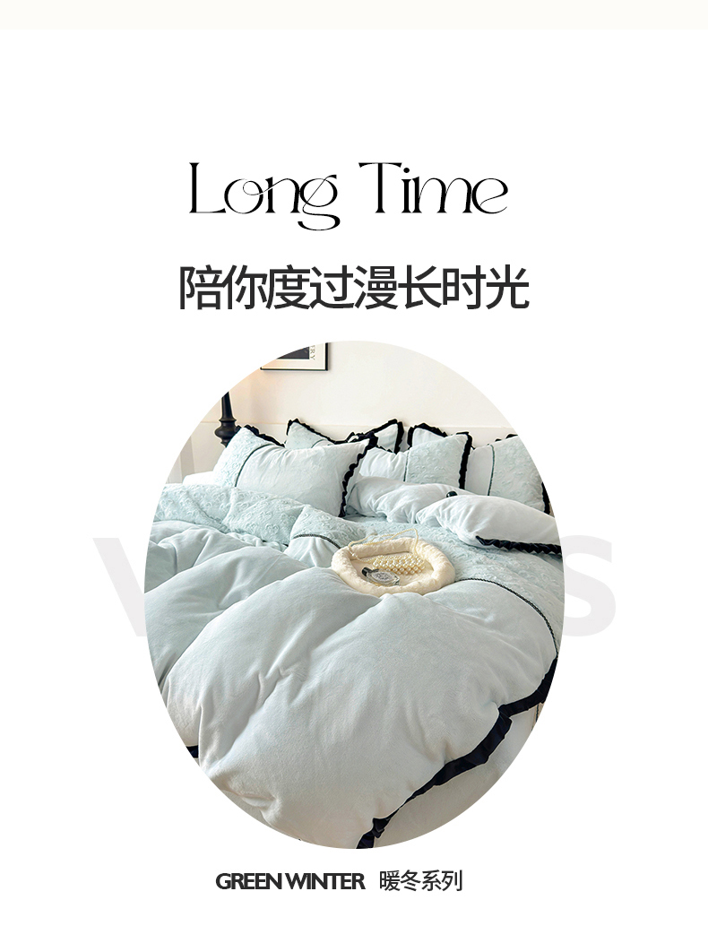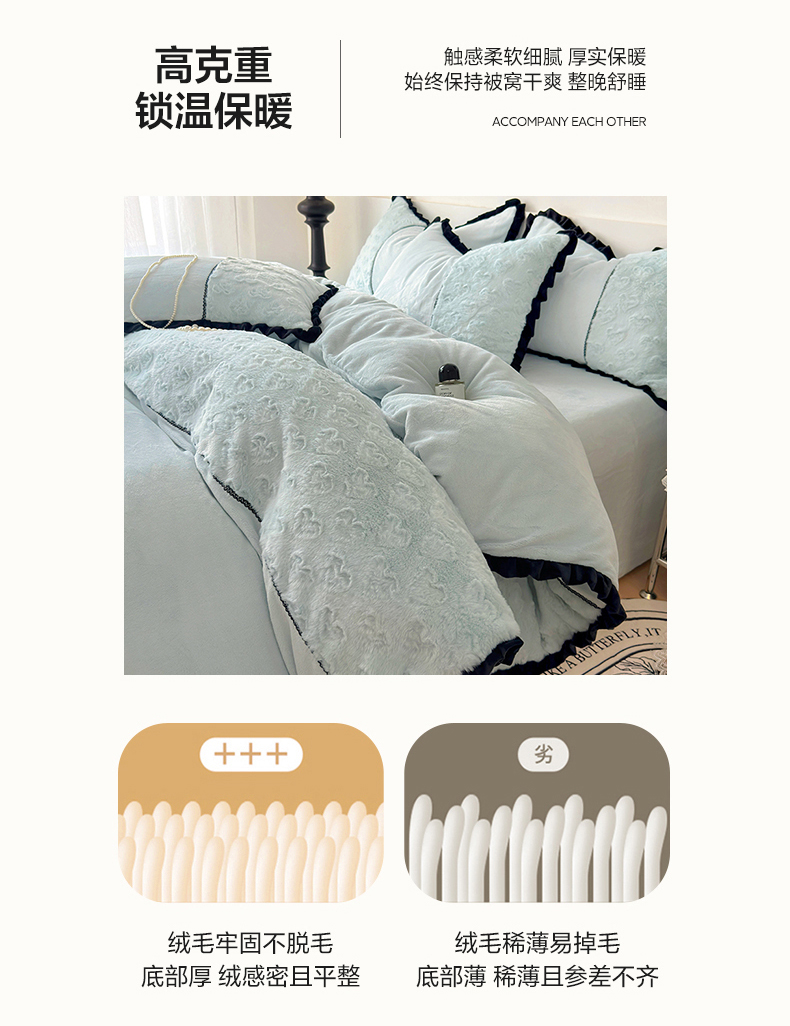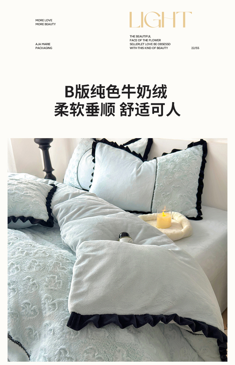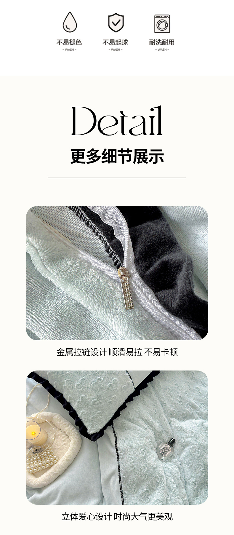 商品名称:春光里 2024新款立体爱心兔毛拼接款牛奶绒四件套 蒂芙尼蓝