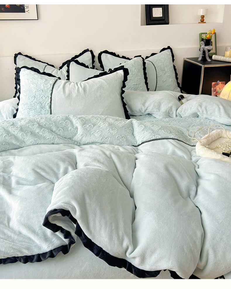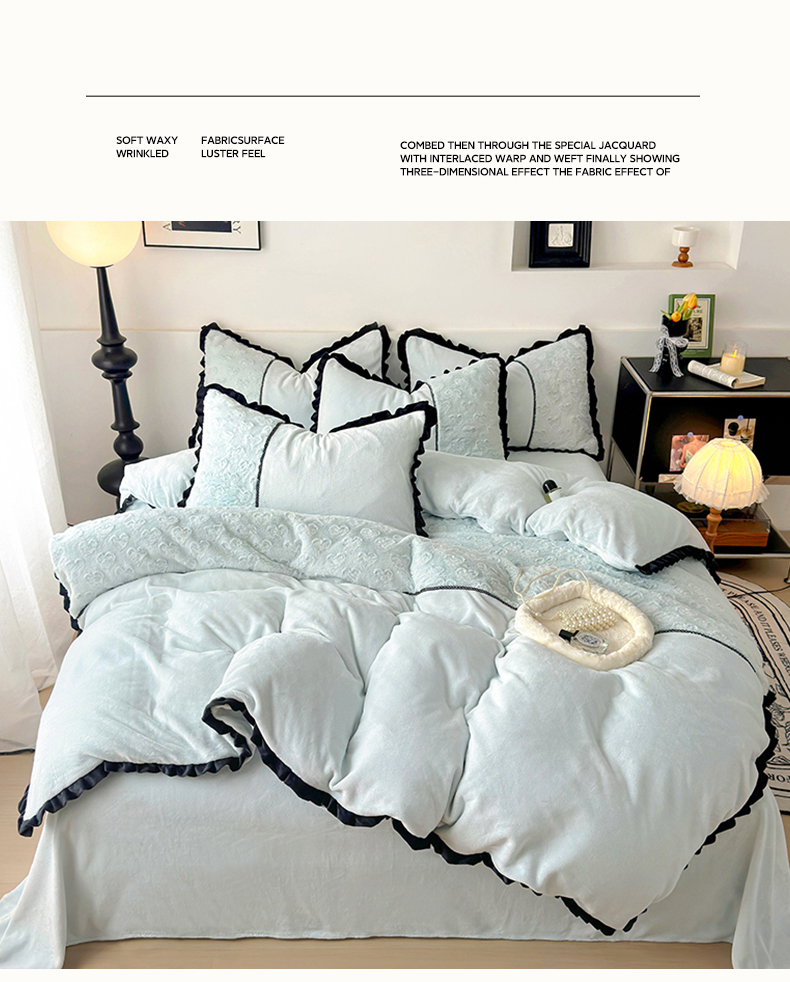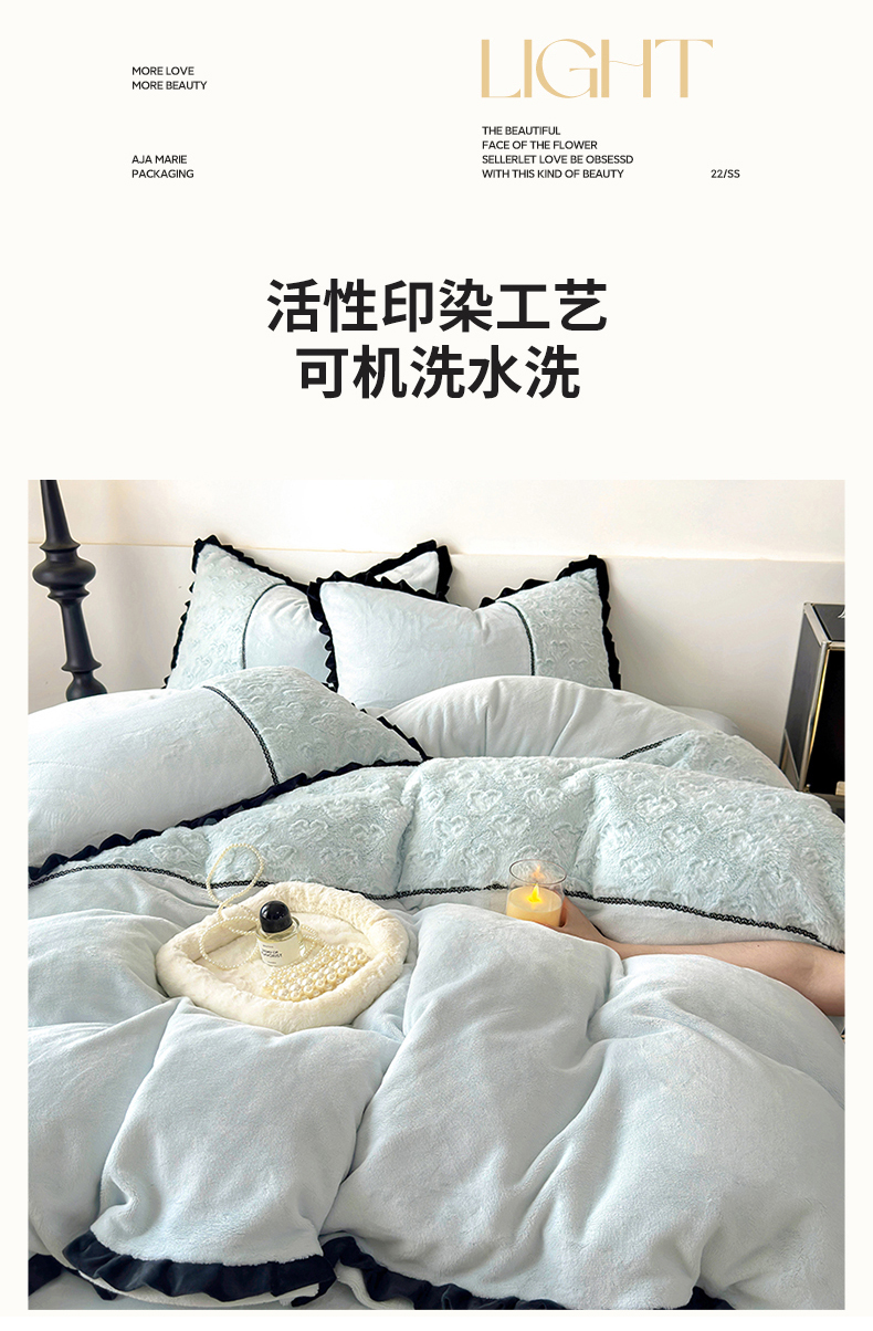 春光里 2024新款立体爱心兔毛拼接款牛奶绒四件套 蒂芙尼蓝