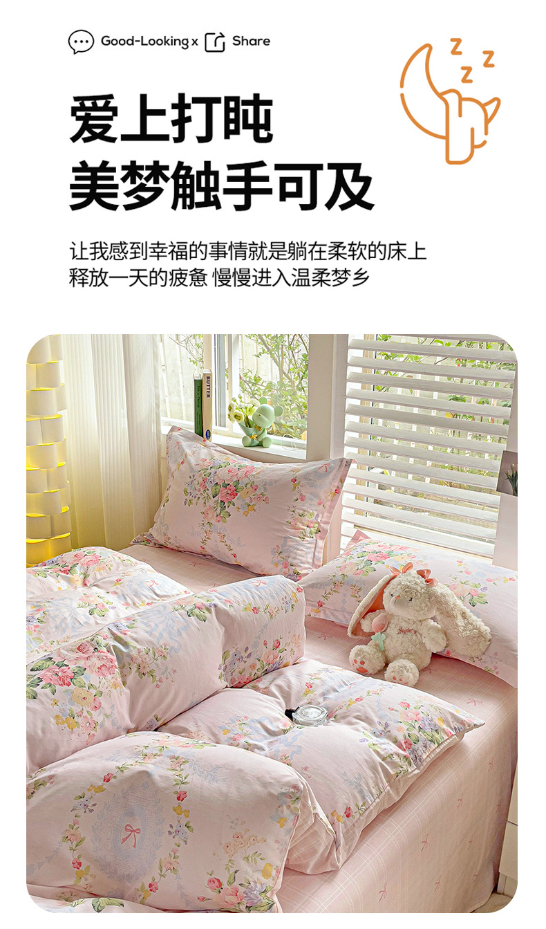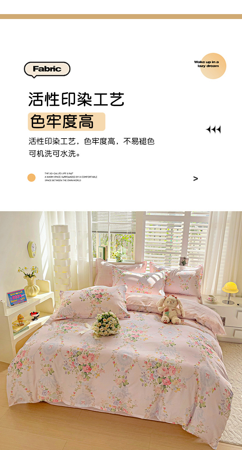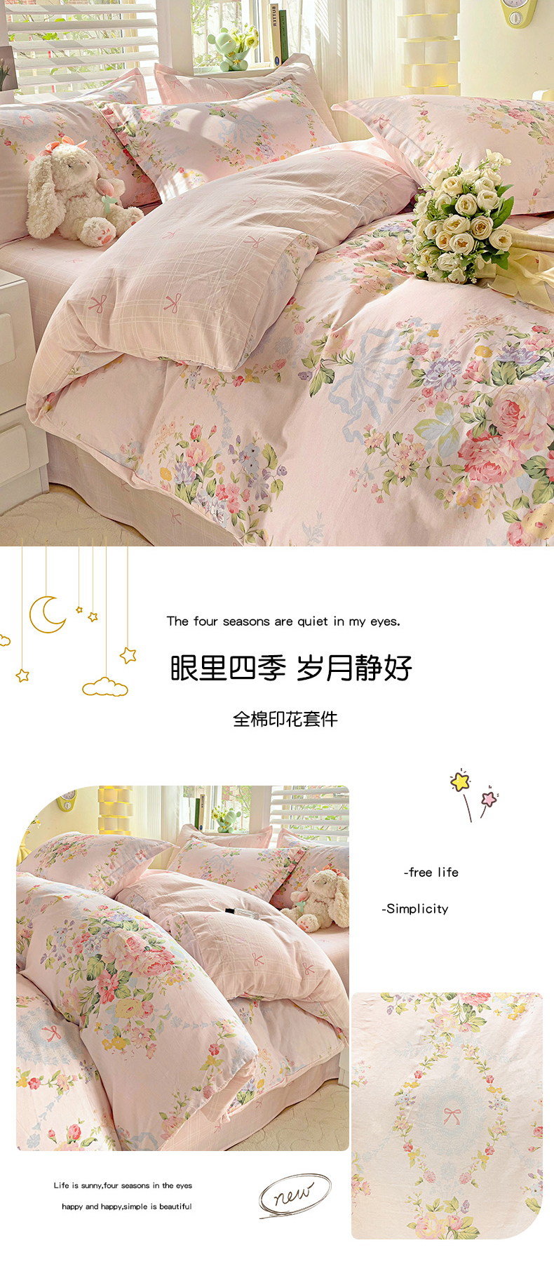 商品名称:优选良品 2025新款直播爆款全棉-ins印花系列四件套纯棉三件套床单床笠夕颜花开