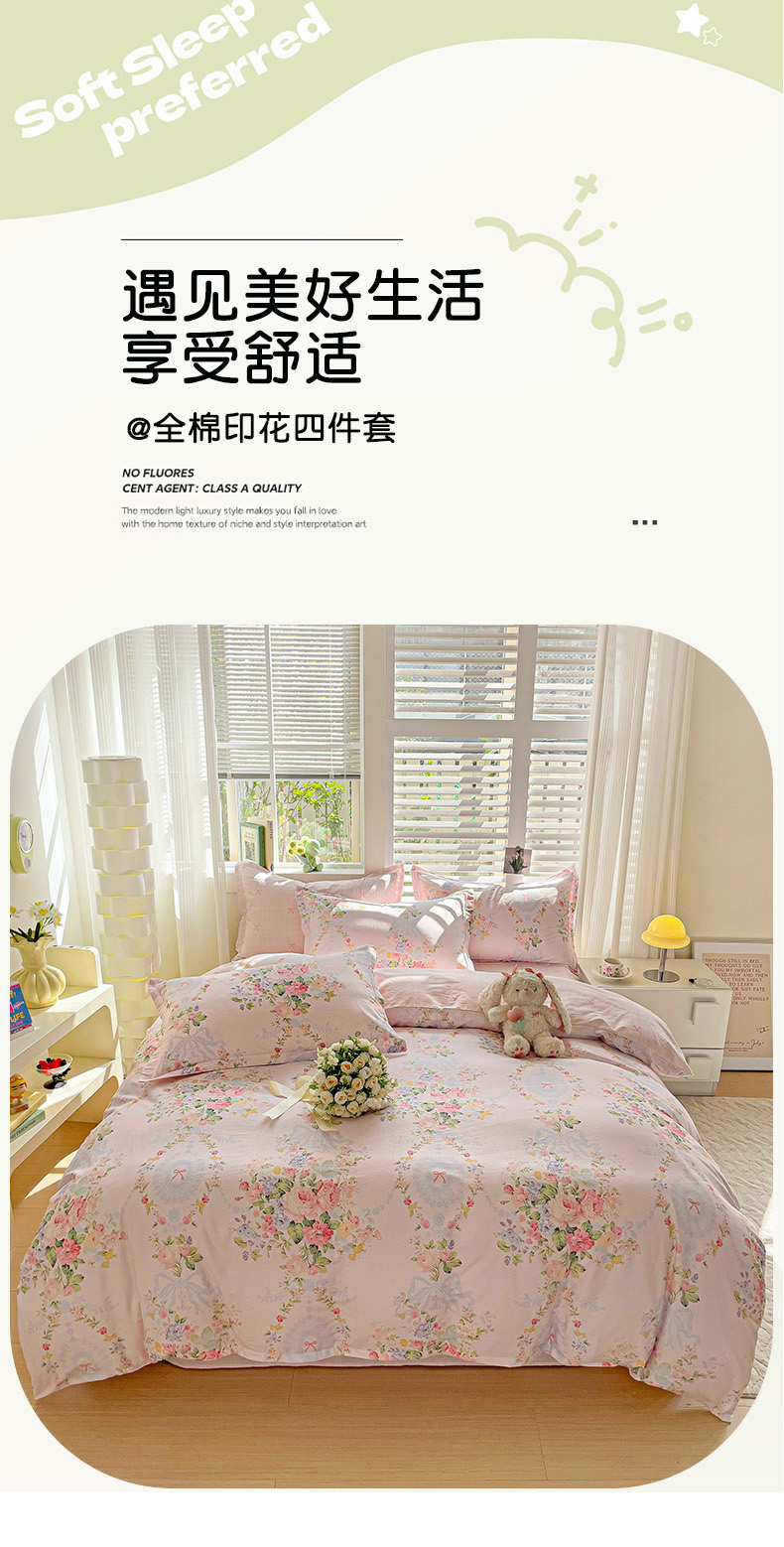 优选良品 2025新款直播爆款全棉-ins印花系列四件套纯棉三件套床单床笠夕颜花开