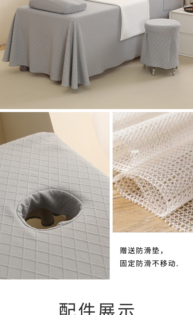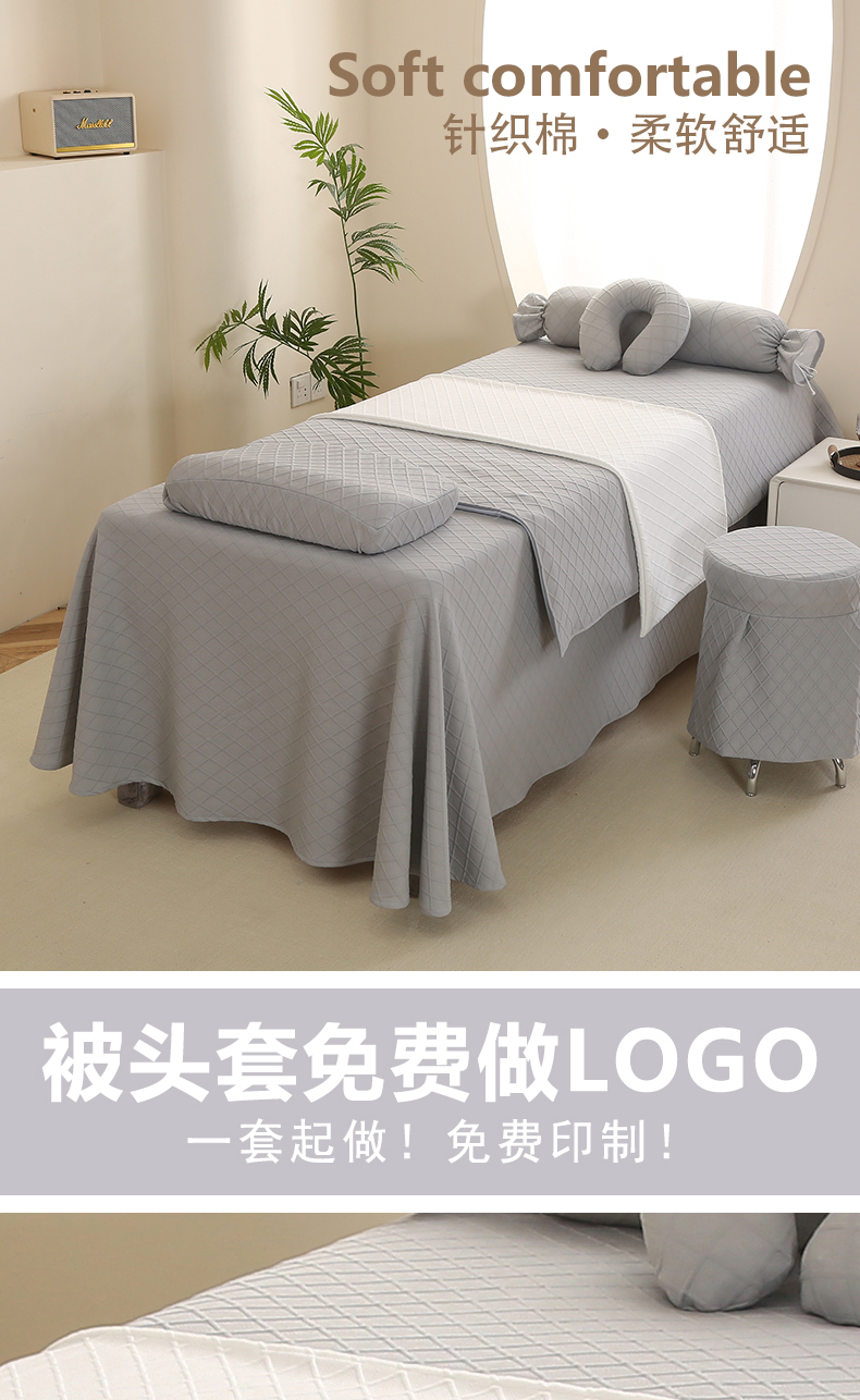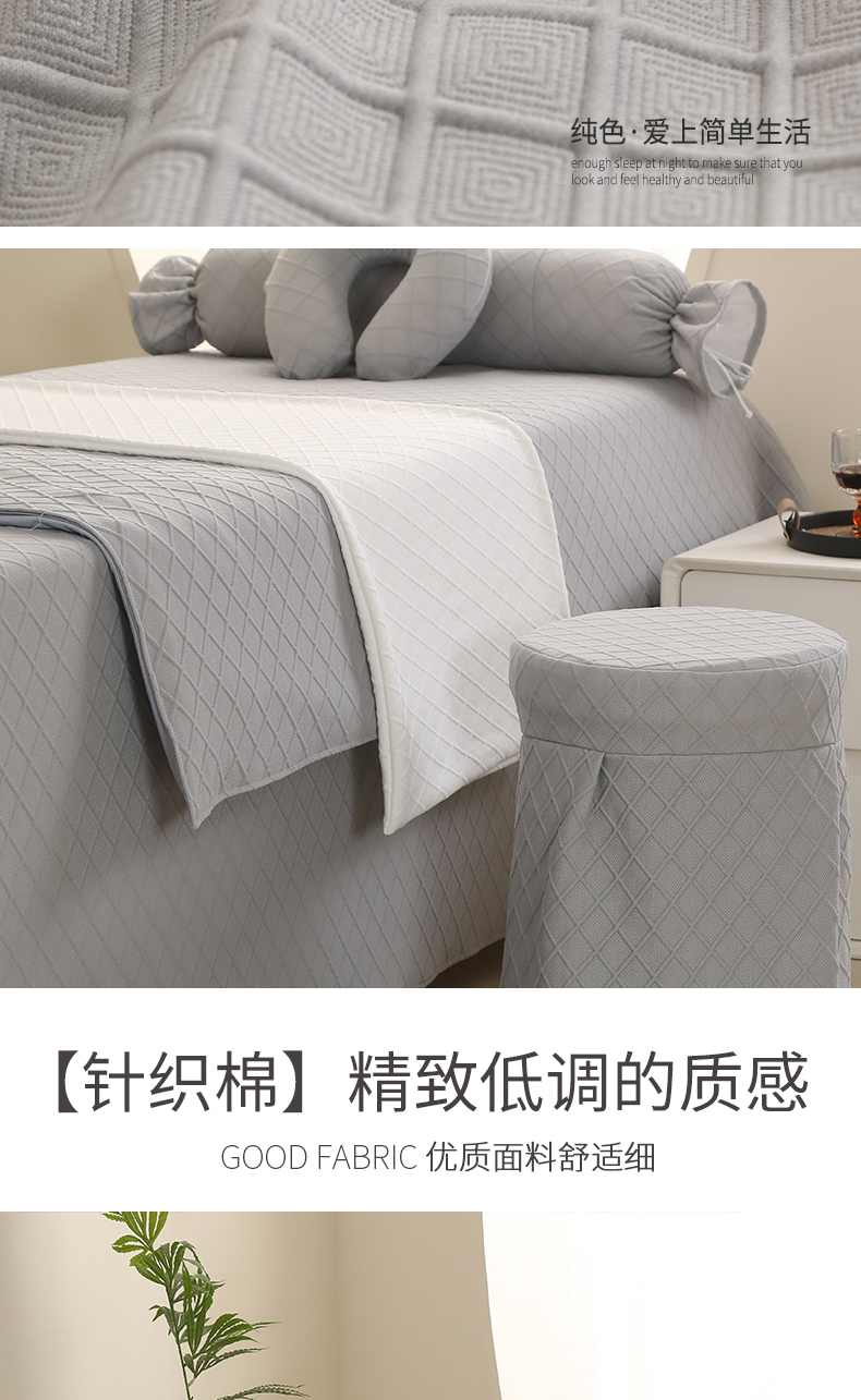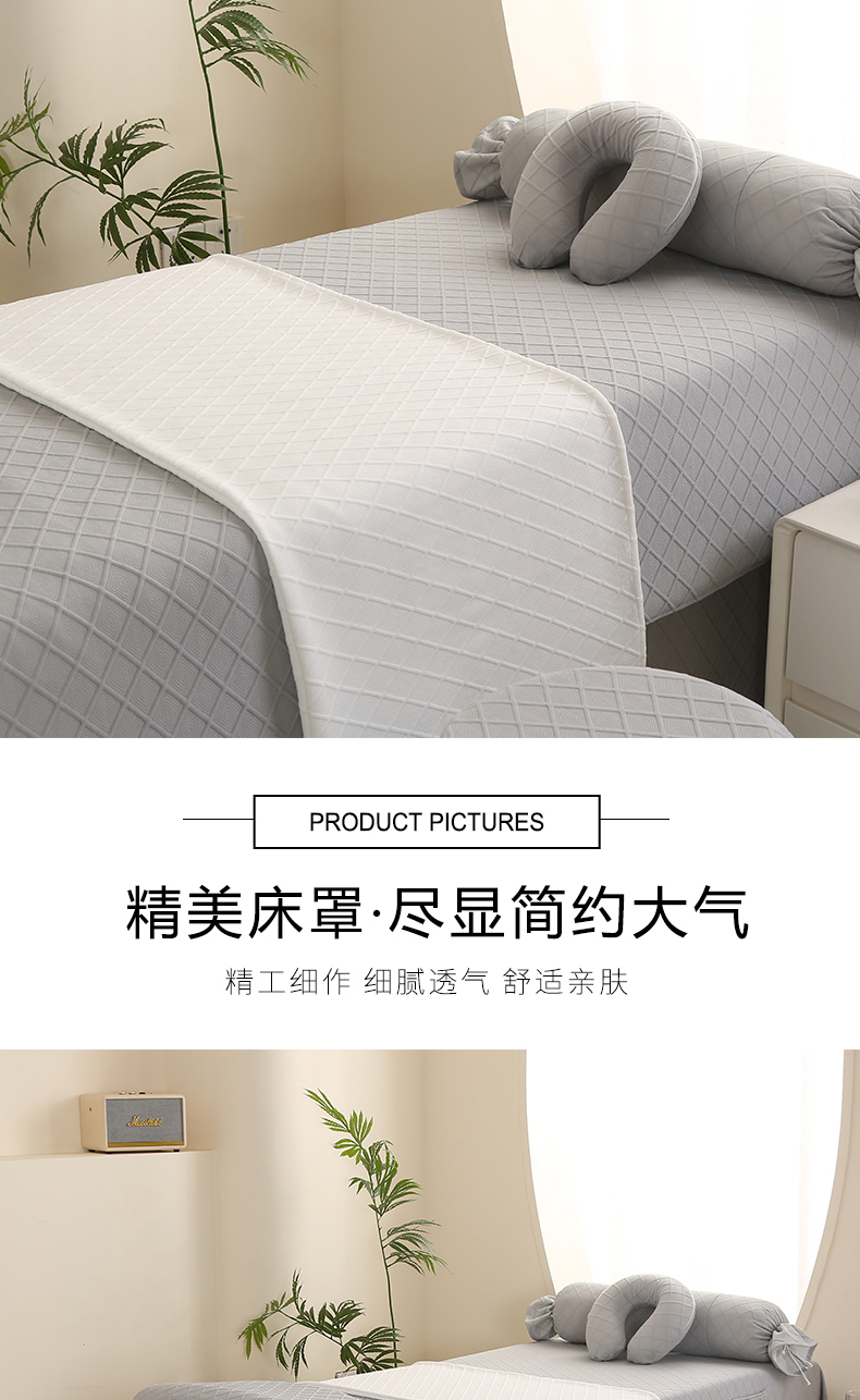 琪宝阁 2024新款莫代尔针织棉美 容床罩套件-华夫格 灰色