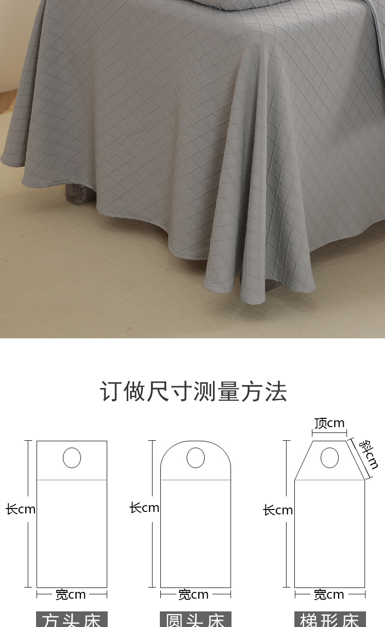 • 91家纺网 家纺一手货源 找家纺 琪宝阁 2024新款莫代尔针织棉美 容床罩套件-华夫格 灰色