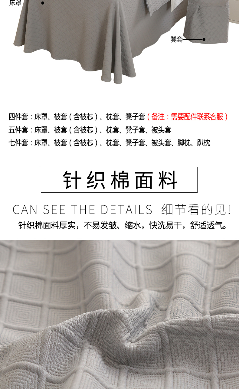 当前位置: 91家纺网 > 商品网购 > 床上用品 > 床罩 > 琪宝阁 2024新款莫代尔针织棉美 容床罩套件-华夫格 灰色