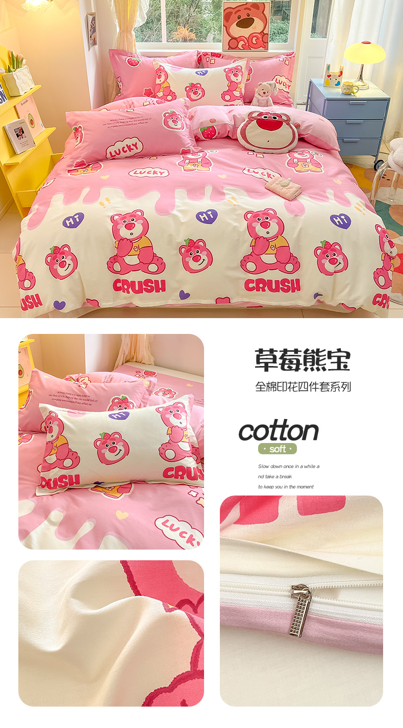 绵庭家纺 2024新款全棉印花四件套 草莓熊宝