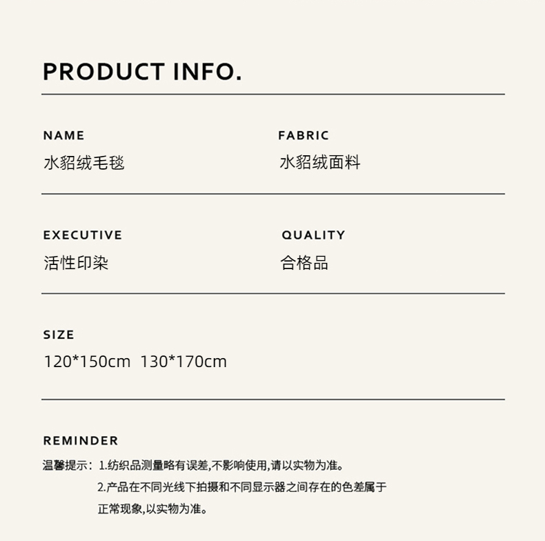 商品名称:(总)凉百百 2024新款水貂绒毛毯毯子