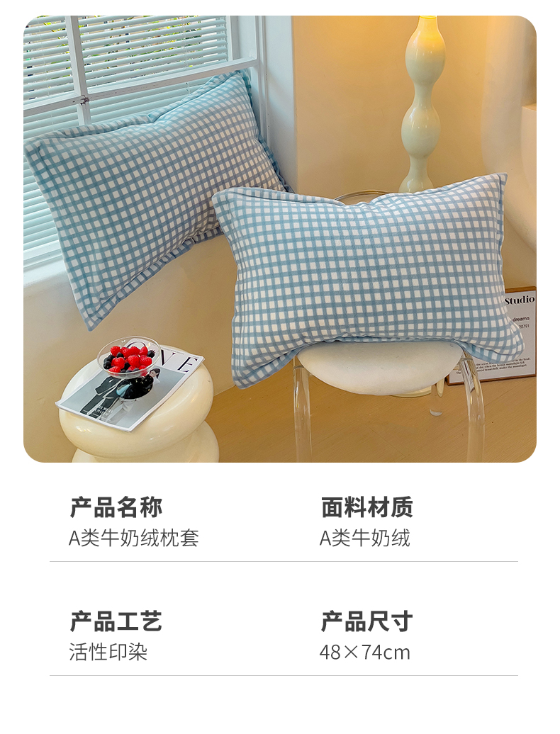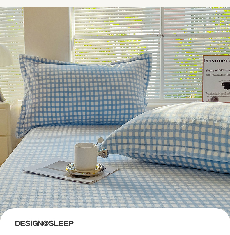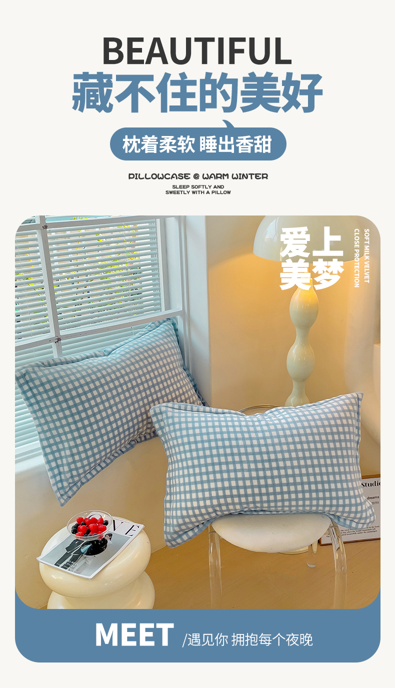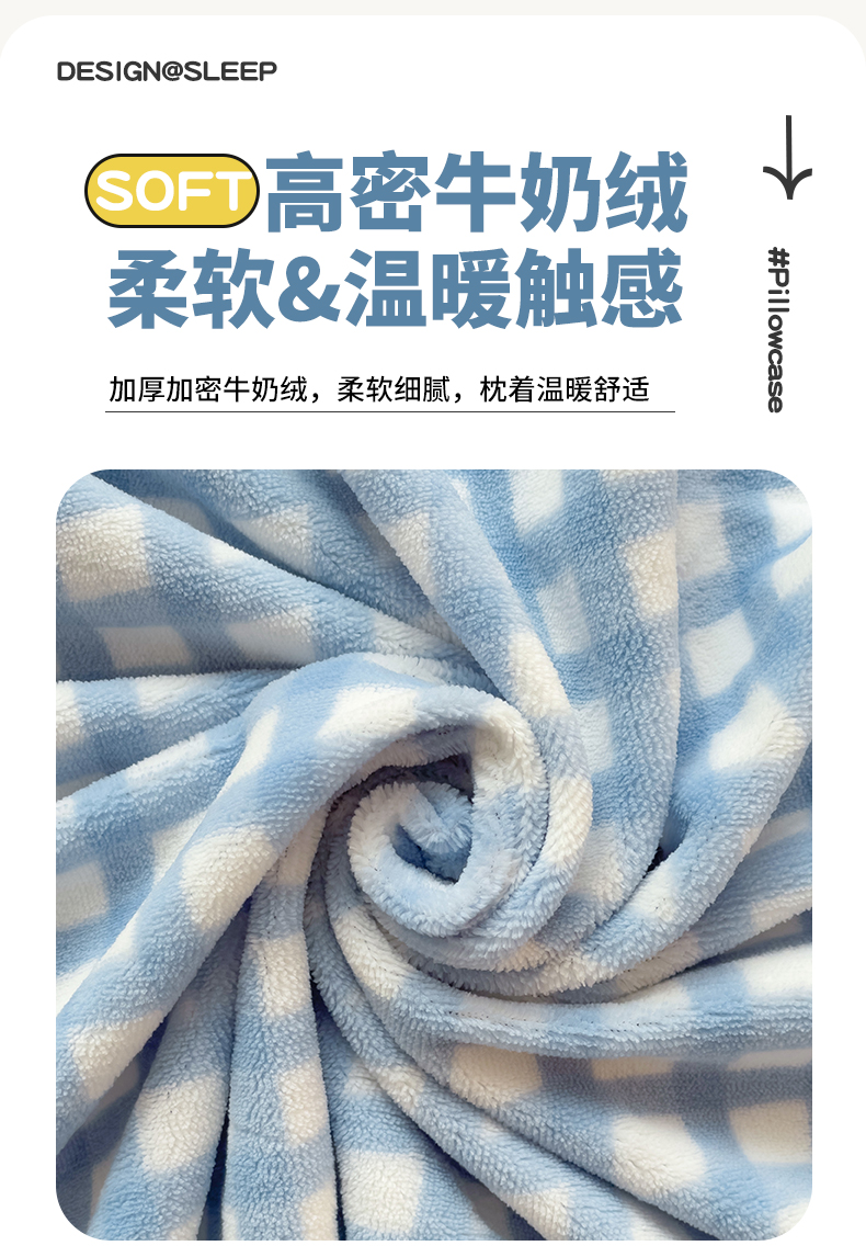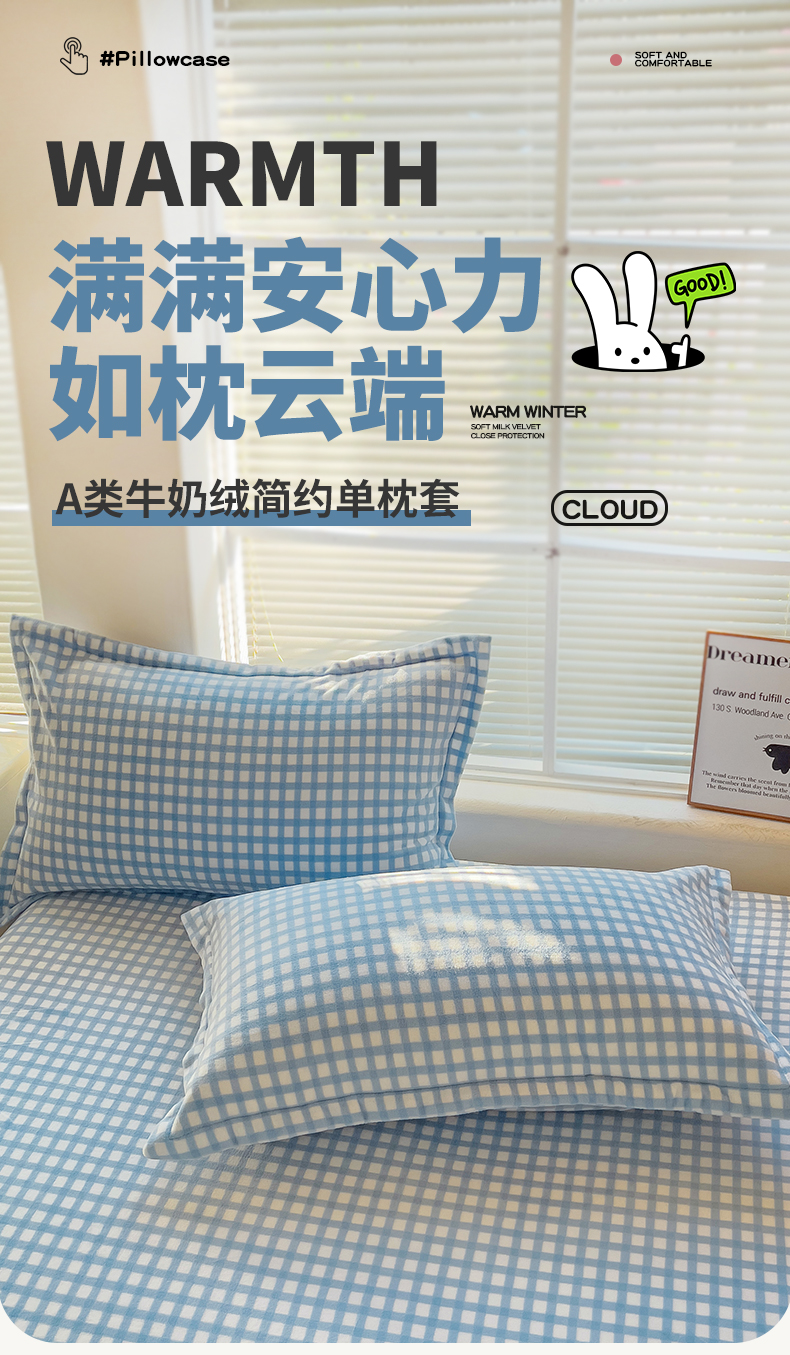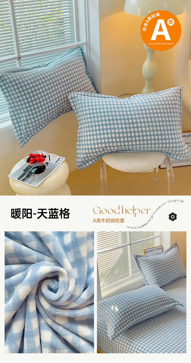 恬澳家纺 2025新款暖阳牛奶绒枕套 暖阳-天蓝格