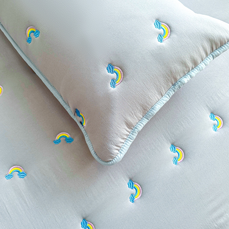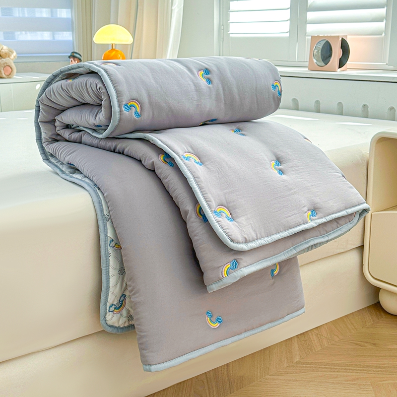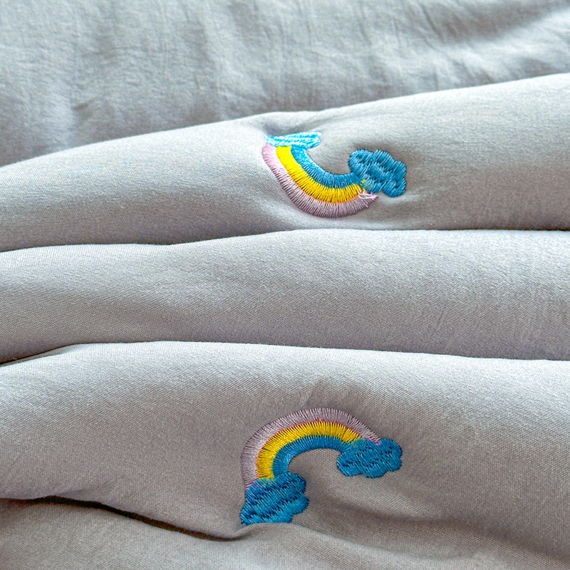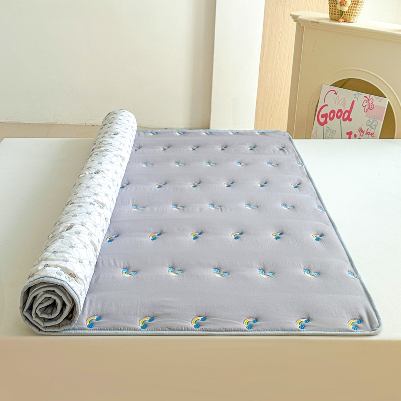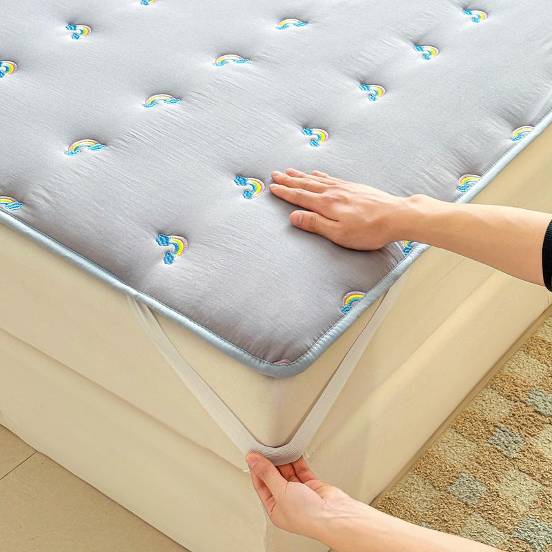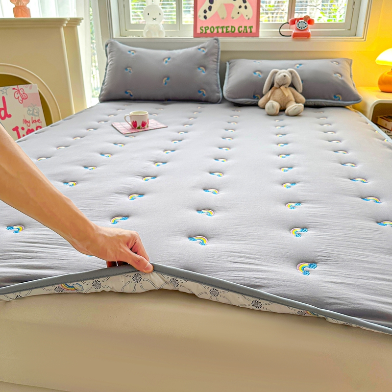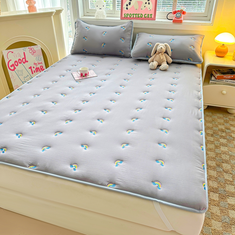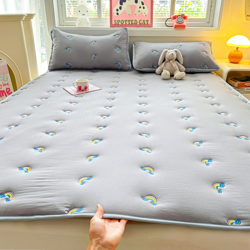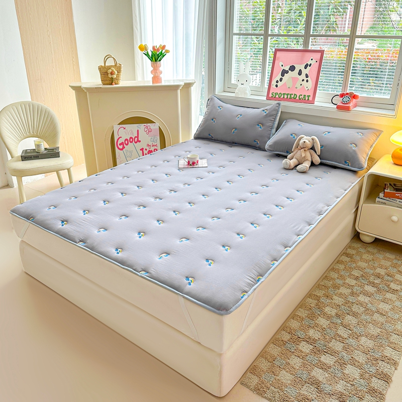 迪梦思家纺 2024新款原棉彩虹刺绣床护垫 彩虹-银灰