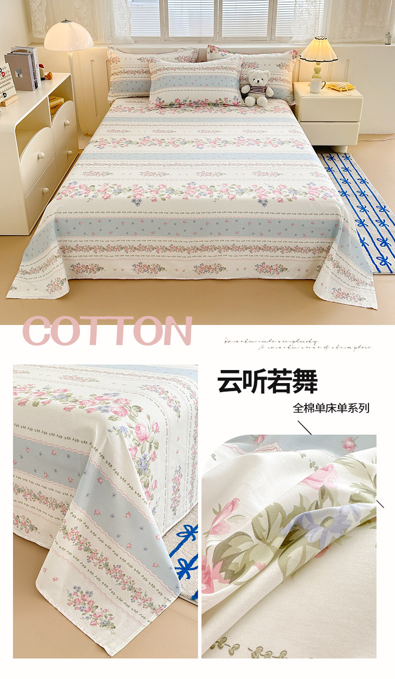 商品名称:绵庭家纺 2025新款全棉印花单床单系列 云听若舞