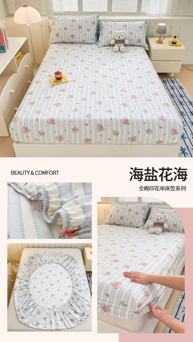 商品名称:绵庭家纺 2025新款全棉印花单床笠系列 海盐花海