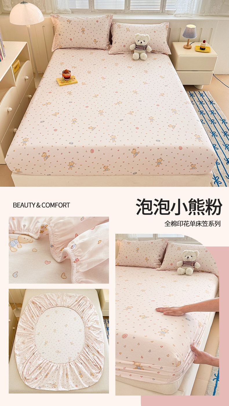 商品名称:绵庭家纺 2025新款全棉印花单床笠系列 泡泡小熊粉
