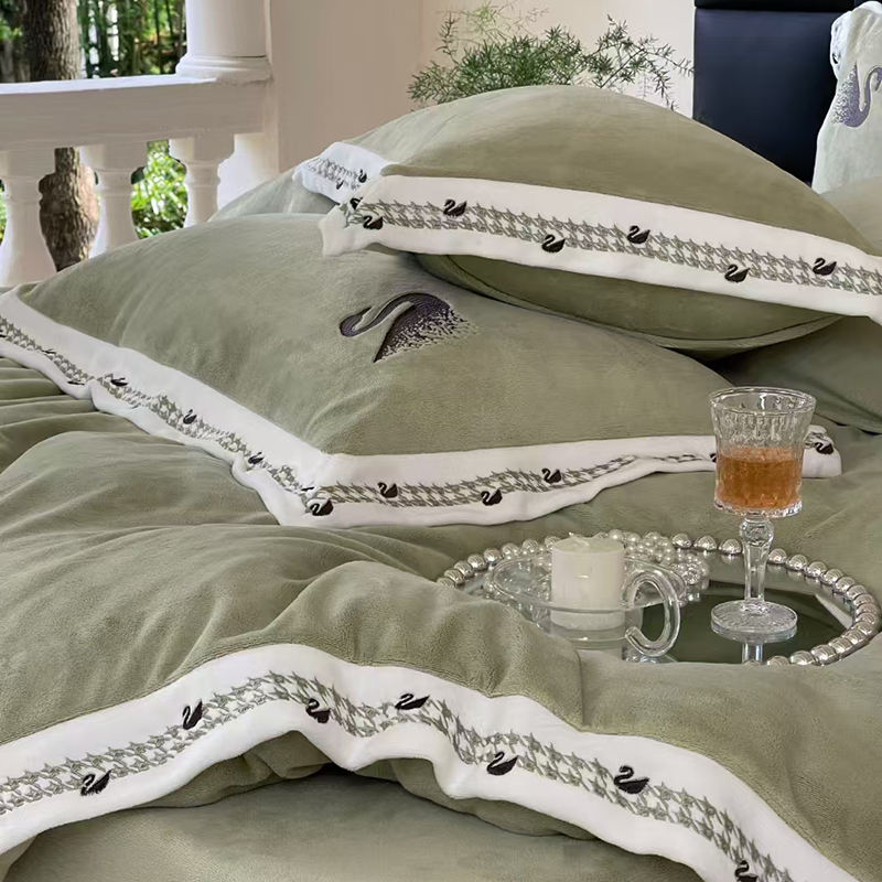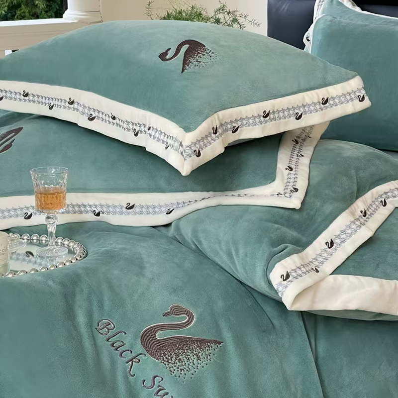 当前位置: 91家纺网 > 商品网购 > 床品套件 > 四件套 > 牛奶绒四件套 > 未来家居 2024新款全消光天鹅刺绣牛奶绒四件套(电商控价格不低于400) 绿色