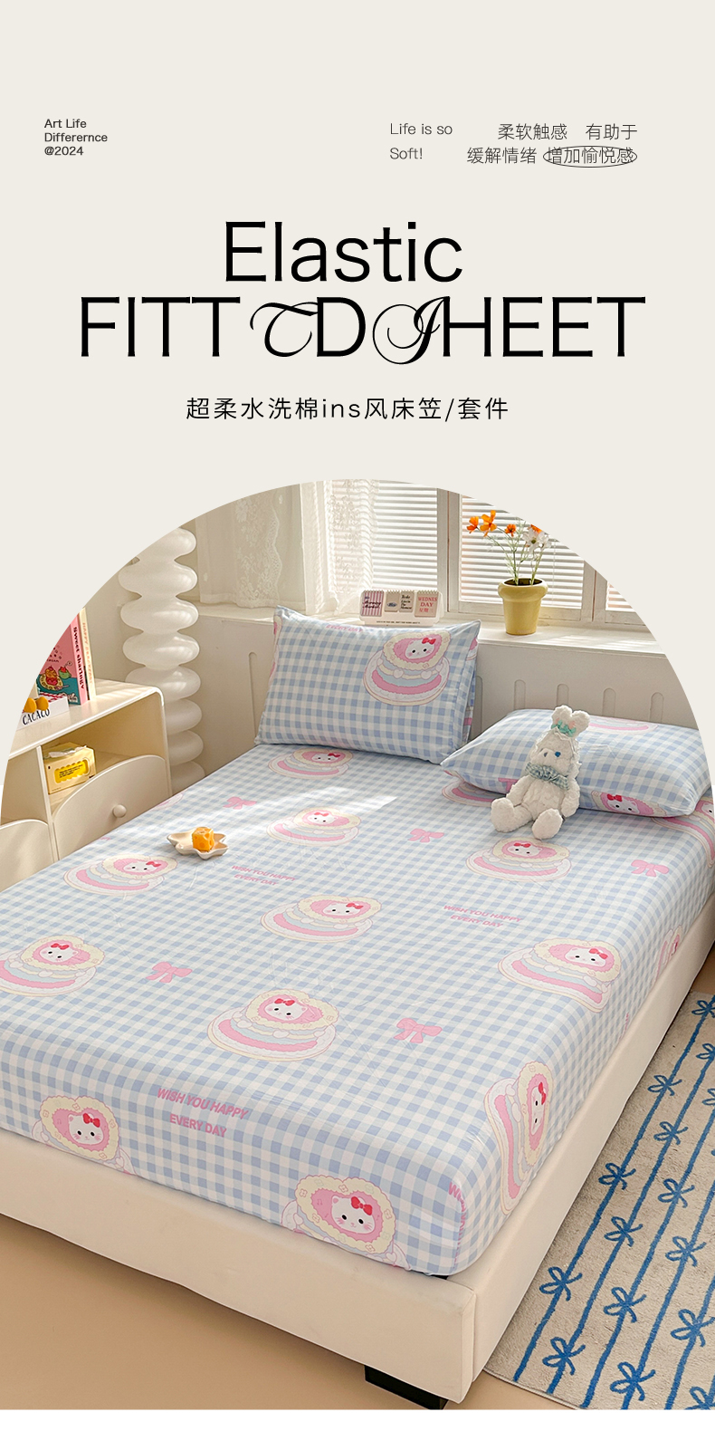 多品家纺 2024新款超柔水洗棉ins风单品床笠 派对猫