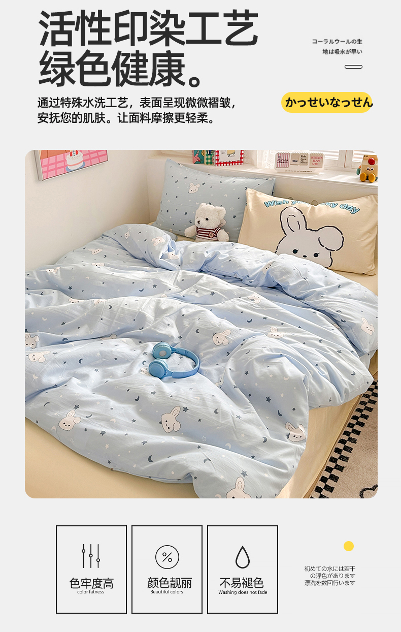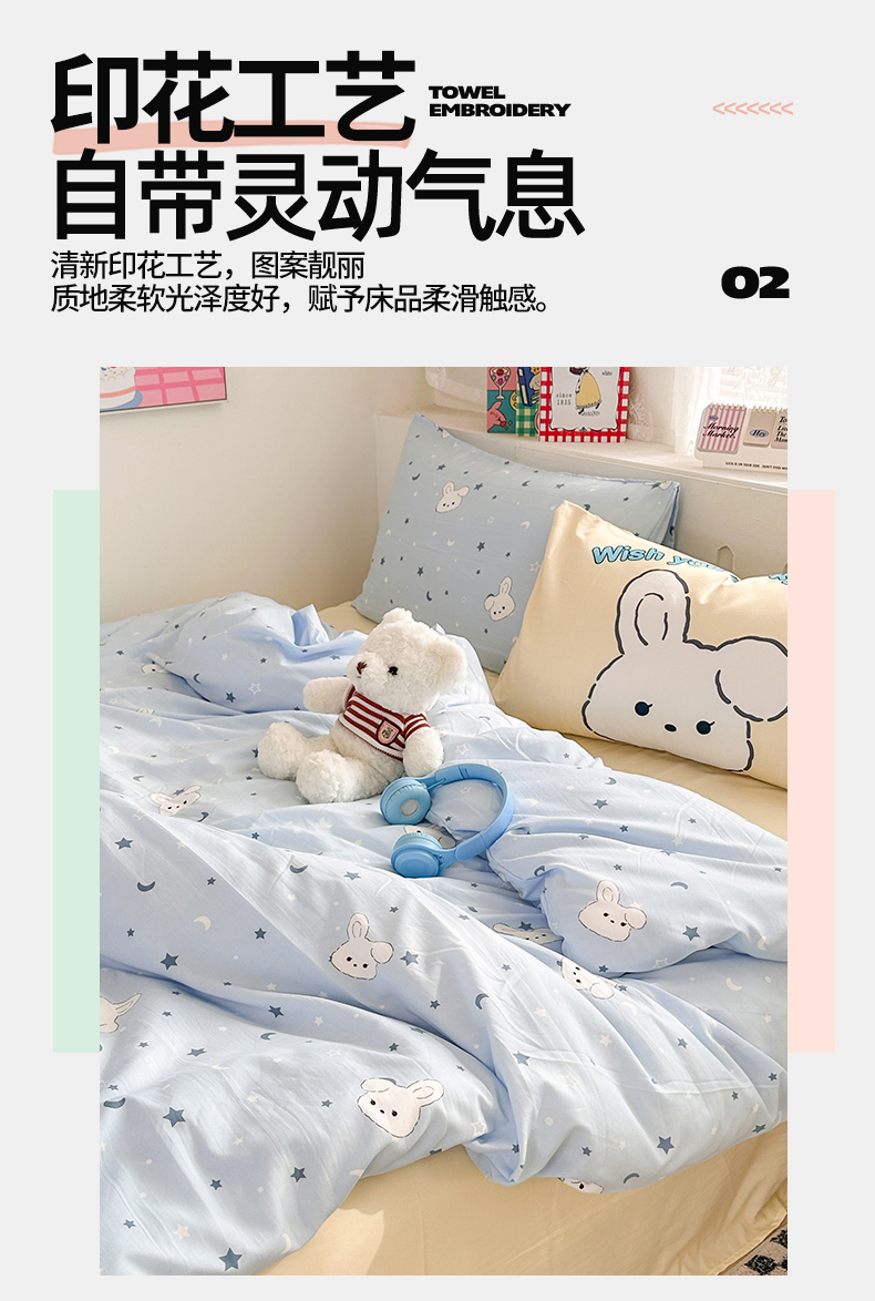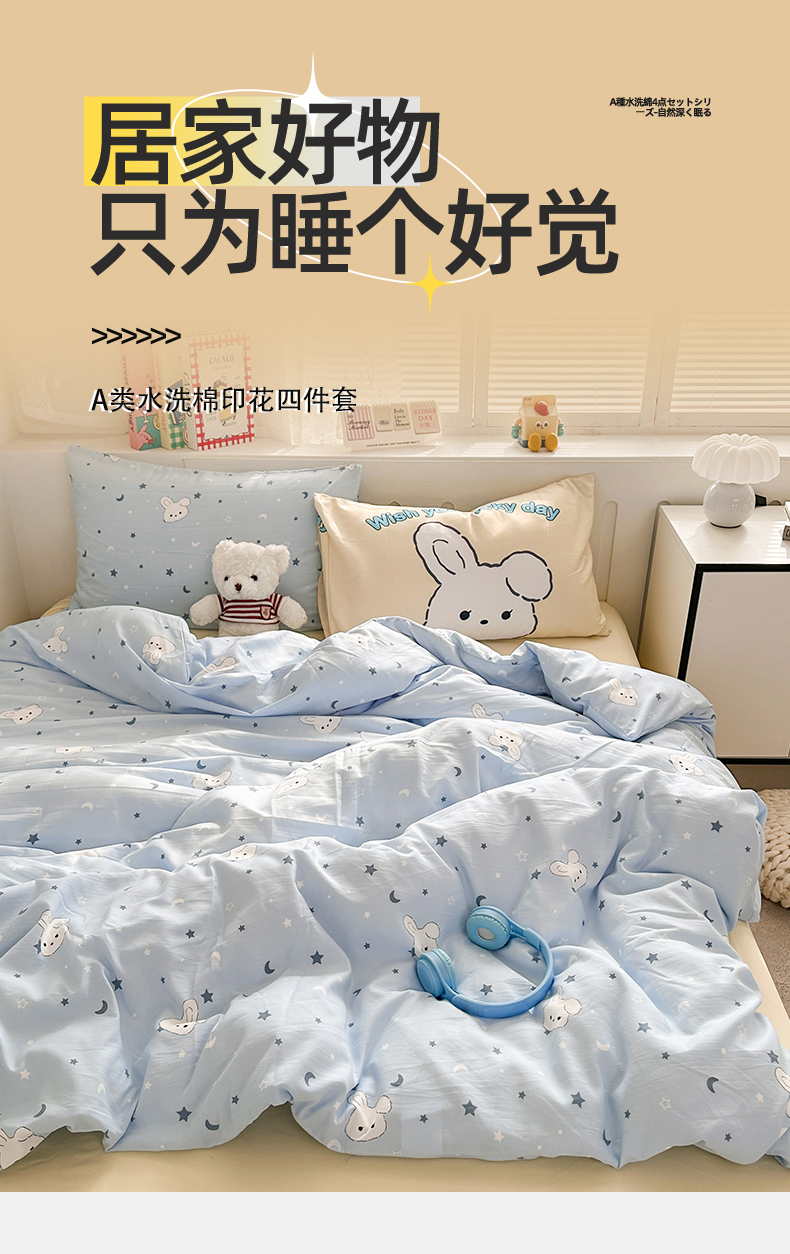 当前位置: 91家纺网 > 商品网购 > 床品套件 > 四件套 > 水洗棉四件套 > 多品家纺 2024新款水洗棉大版枕套混搭四件套 星空小兔