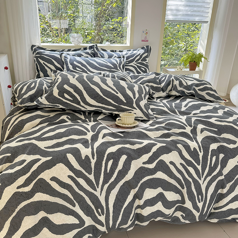 当前位置: 91家纺网 > 商品网购 > 床品套件 > 四件套 > 全棉普通四件套 > 梵巢家纺 2025新款芦荟棉四件套和单品印花四件套 床笠款四件套斑马纹