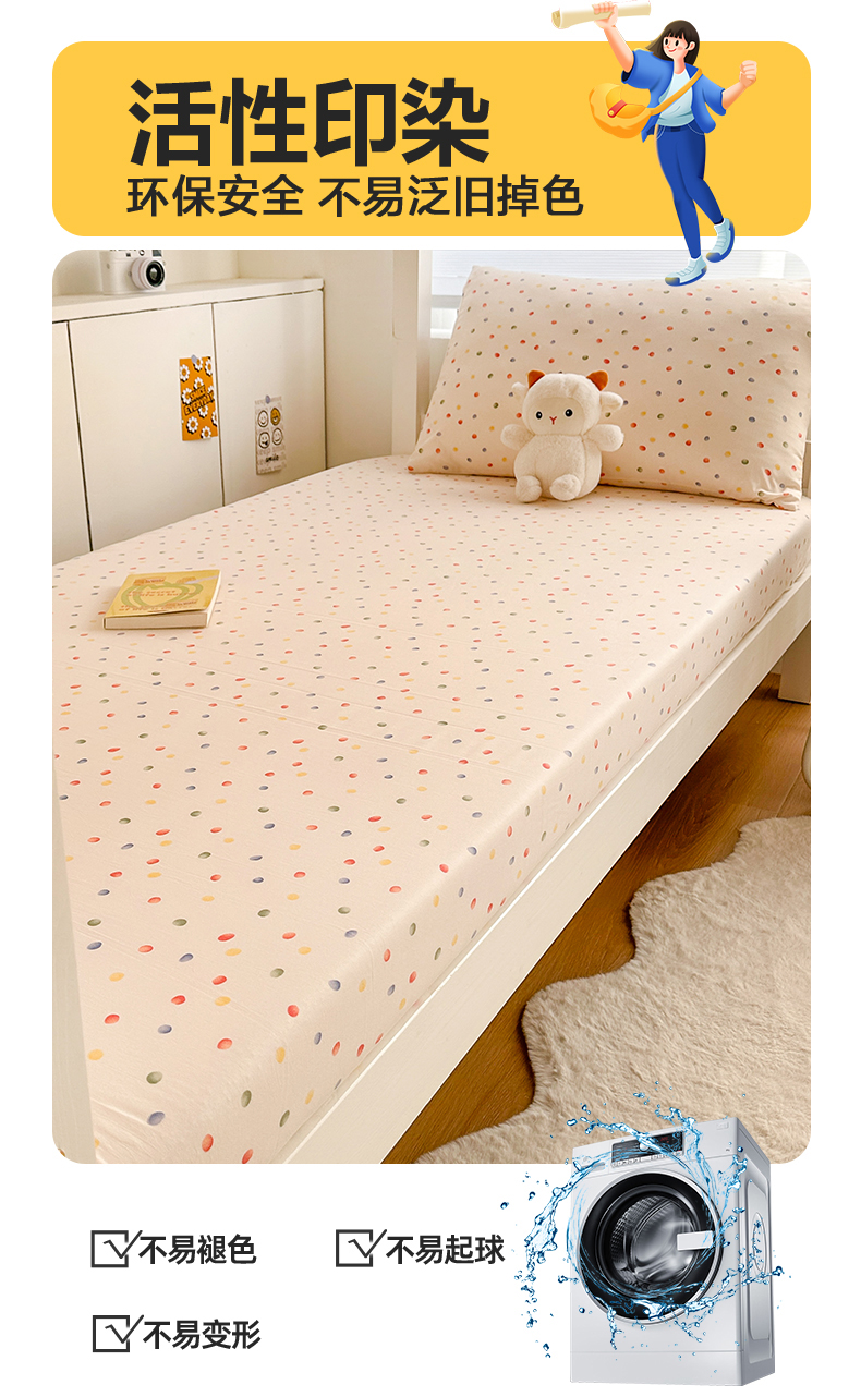 • 91家纺网 家纺一手货源 找家纺 多品家纺 2025新款超柔水洗棉ins风学生宿舍单品床笠 彩虹糖
