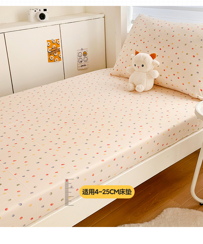 多品家纺 2025新款超柔水洗棉ins风学生宿舍单品床笠 彩虹糖