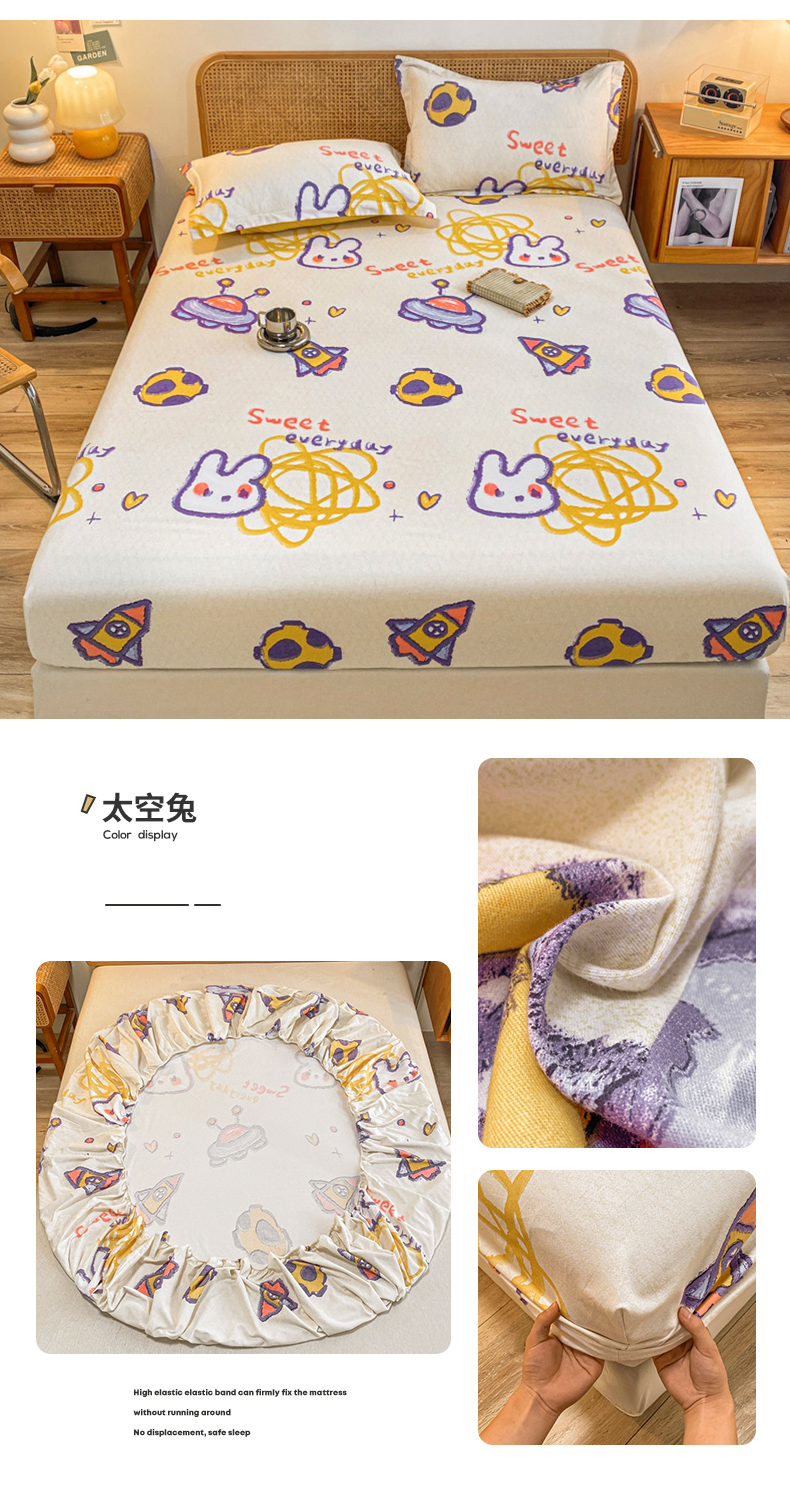 (总)小叮当家纺仓储工厂店 【长期供货】2025新款雪花绒学生床单床笠单品床笠单件床笠【支持小批量定制】,R情调,R兔兔,R草莓,R太空,R小熊