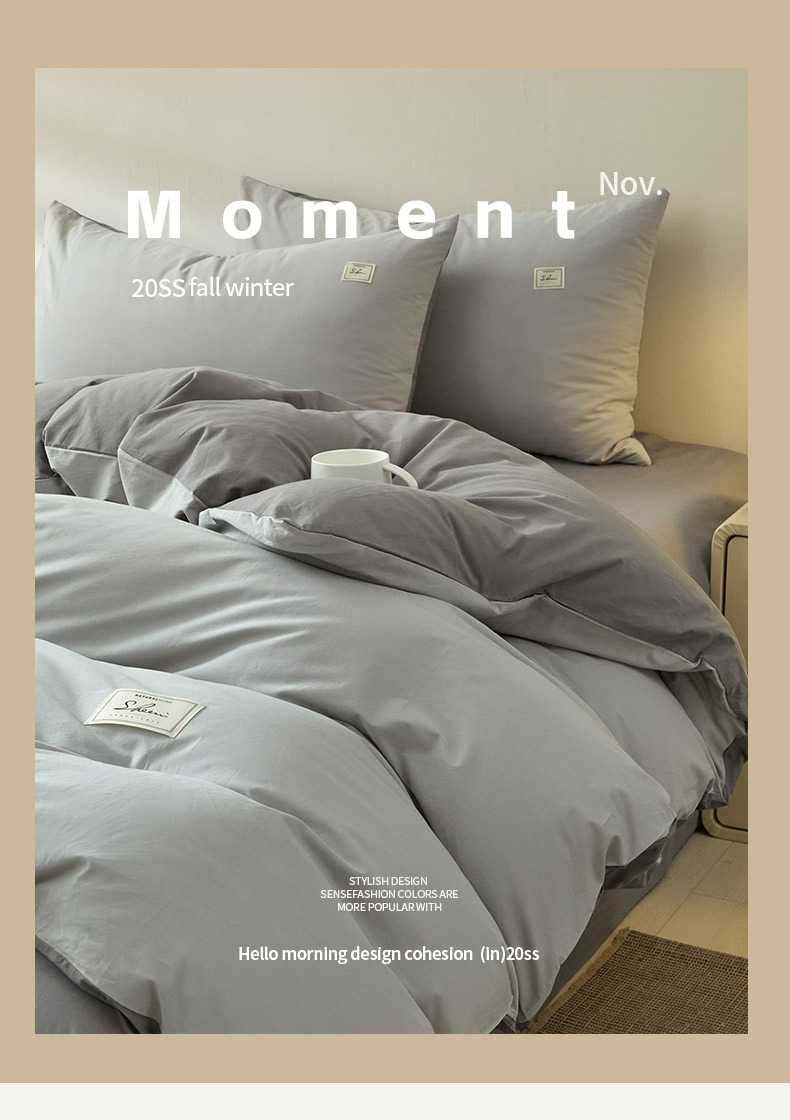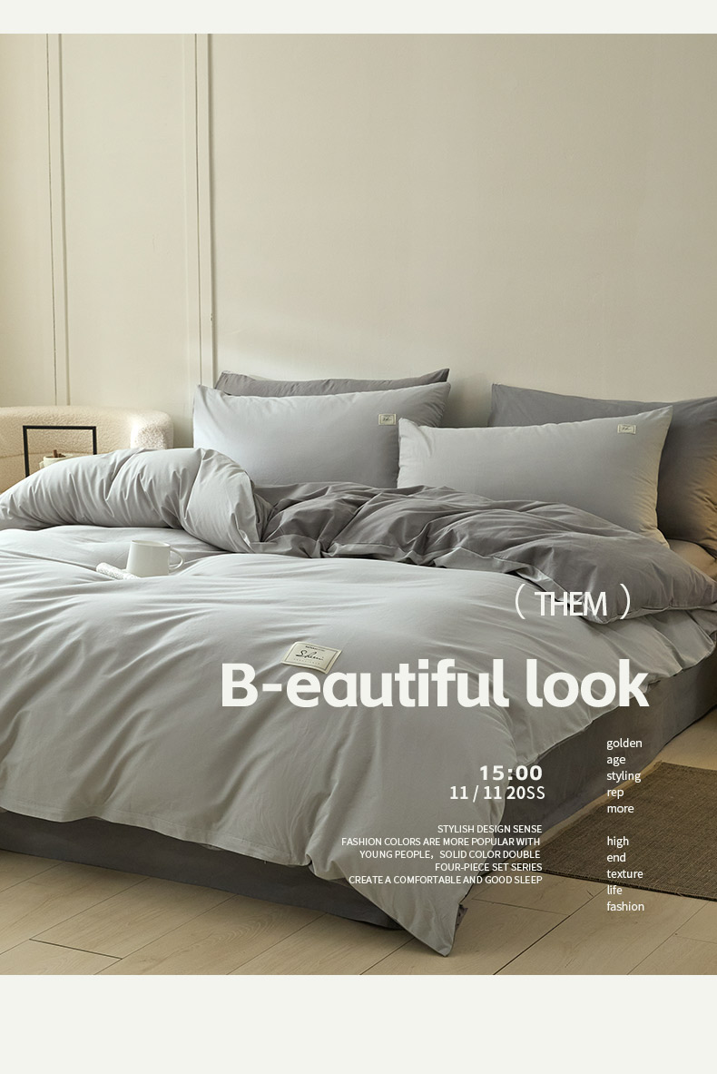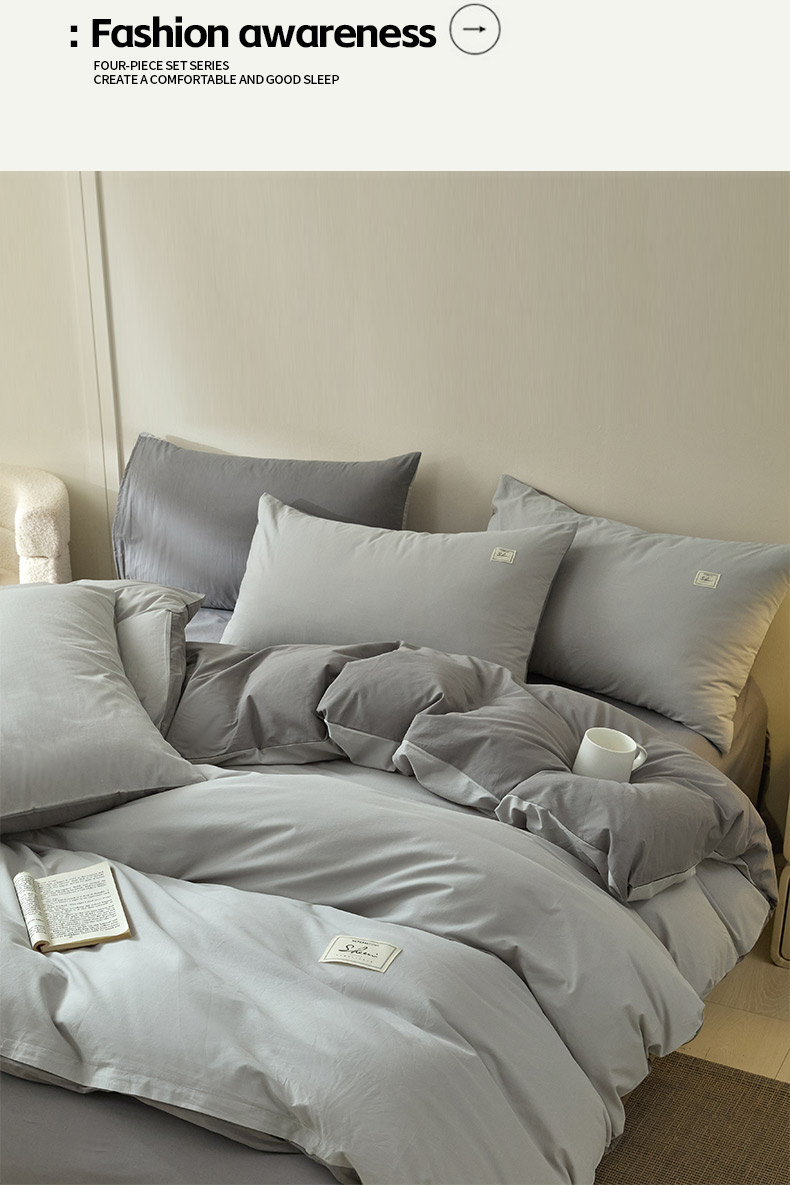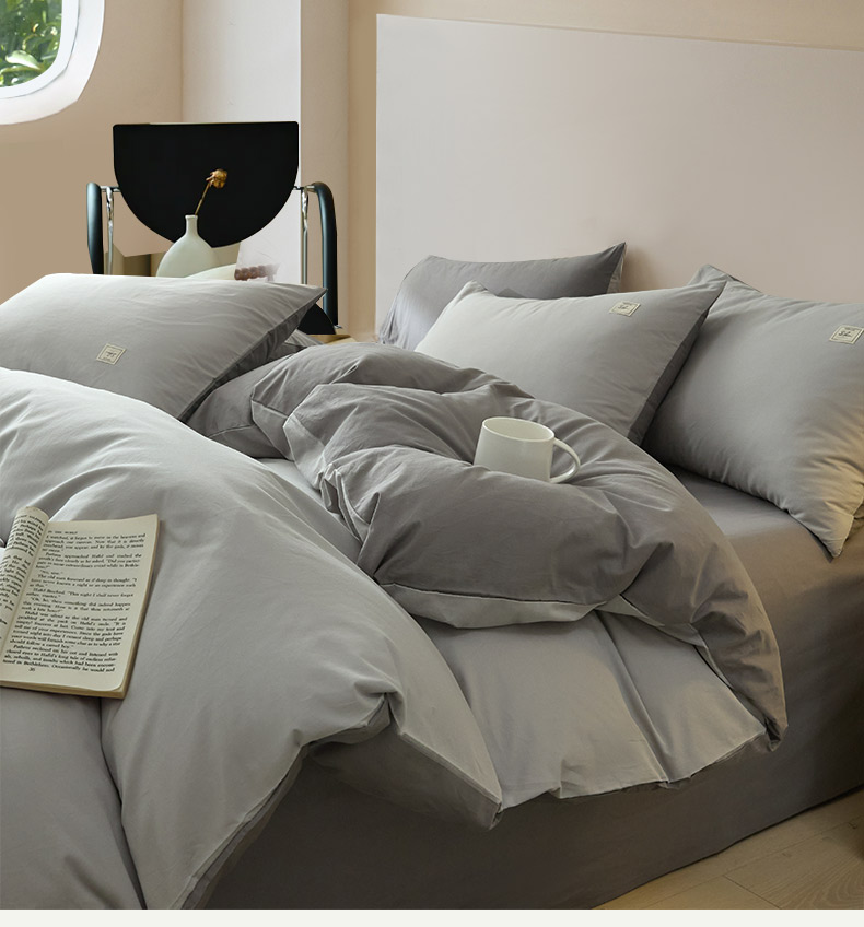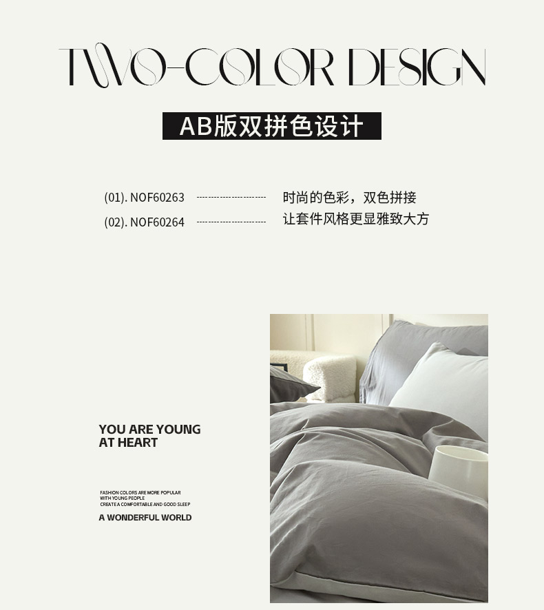 当前位置: 91家纺网 > 商品网购 > 床品套件 > 四件套 > 全棉普通四件套 > ab家纺 2025新款色织全棉40支水洗棉四件套--双拼第二组 浅灰深灰