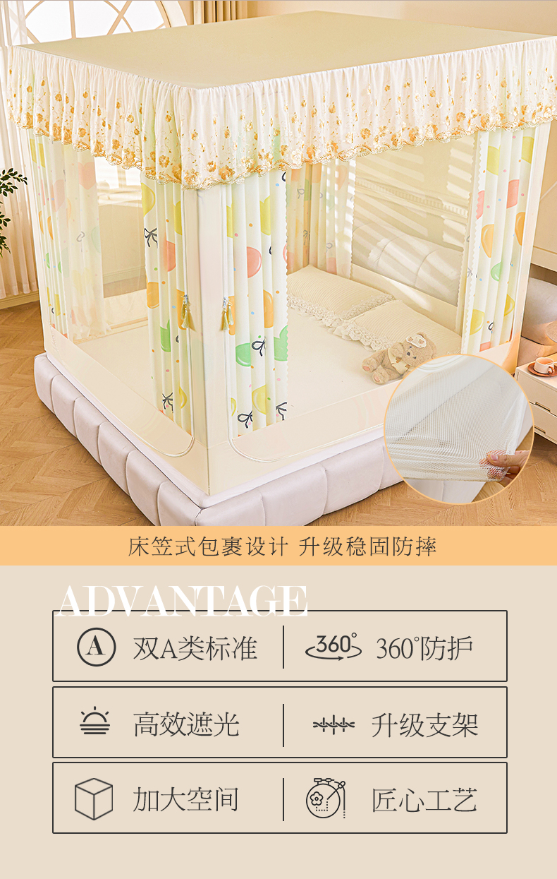 当前位置: 91家纺网 > 商品网购 > 床上用品 > 蚊帐 > 坐床式蚊帐 > 艾晶美家纺有限公司 2025新款坐式刺绣床帘蚊帐 多彩心