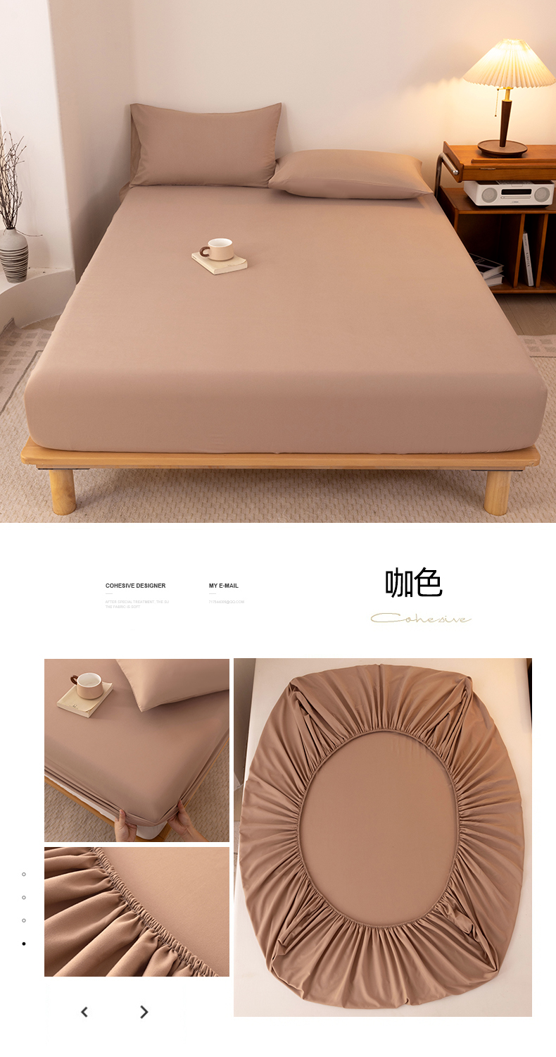 • 91家纺网 家纺一手货源 找家纺 优迈 2025新款水洗棉亲肤磨毛纯色单品系列单床笠单枕套三件套 咖色
