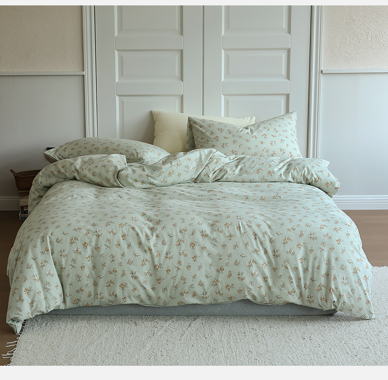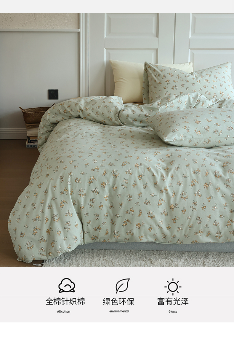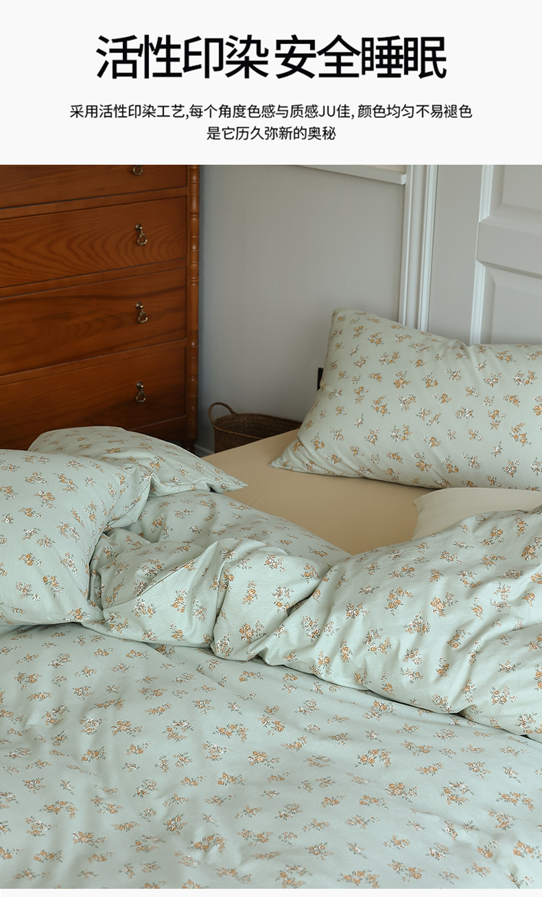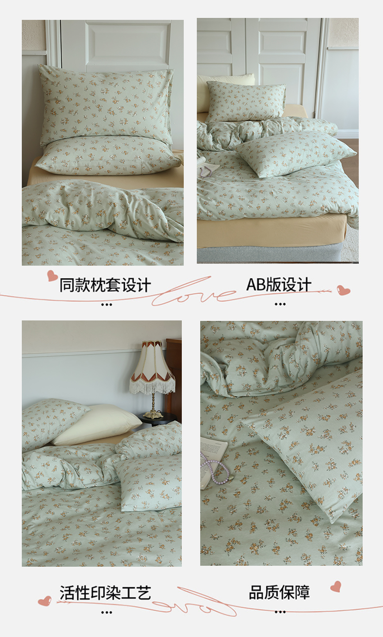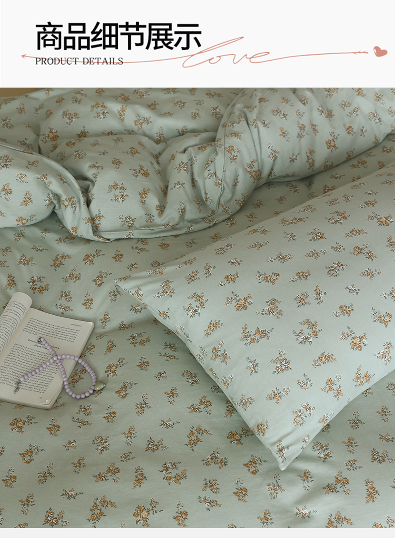 商品名称:2025春夏新品母婴A类全棉纯棉针织棉软糯糯清新小碎花床单款四件套 复古玫瑰