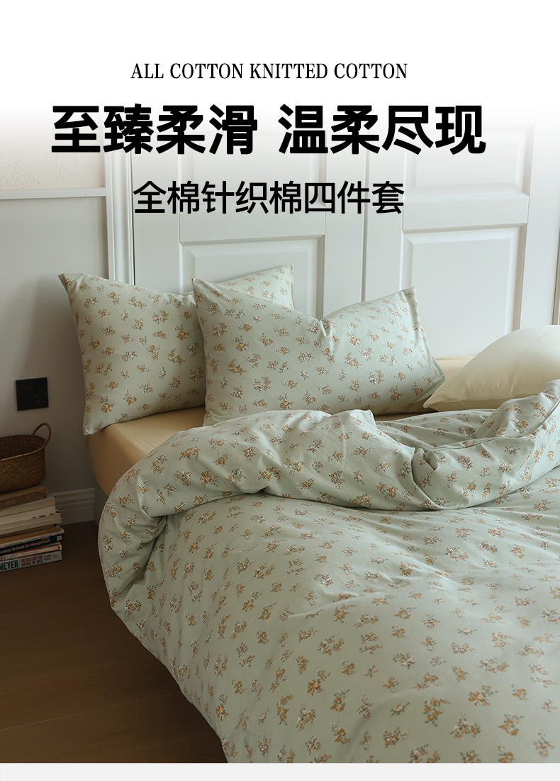 2025春夏新品母婴A类全棉纯棉针织棉软糯糯清新小碎花床单款四件套 复古玫瑰
