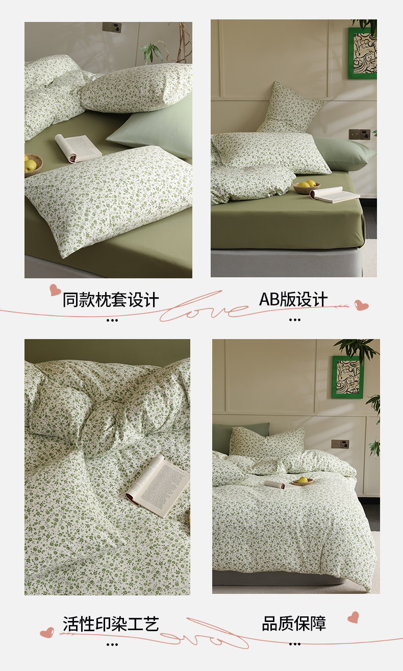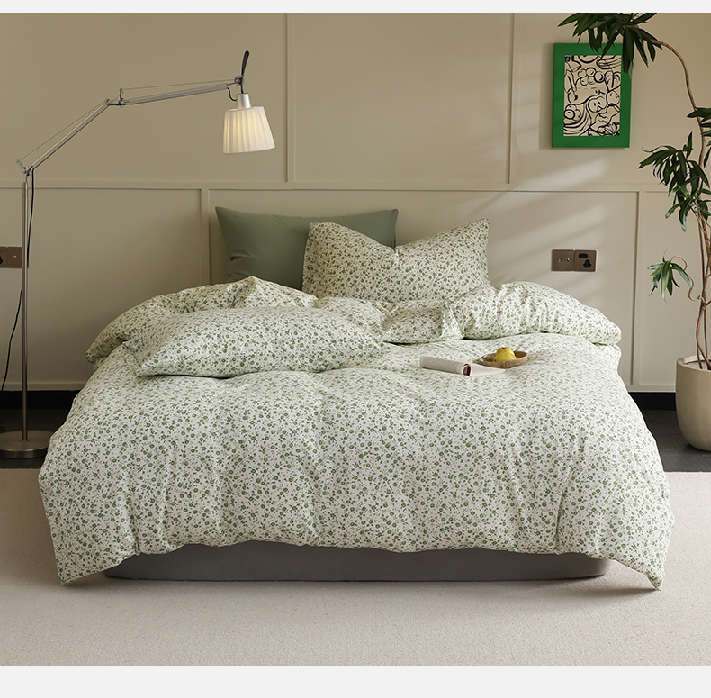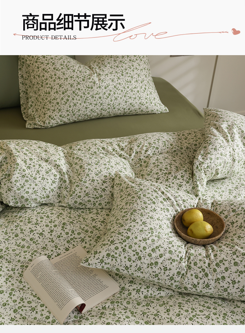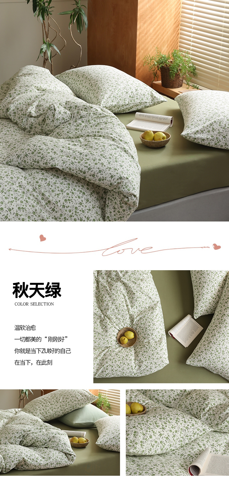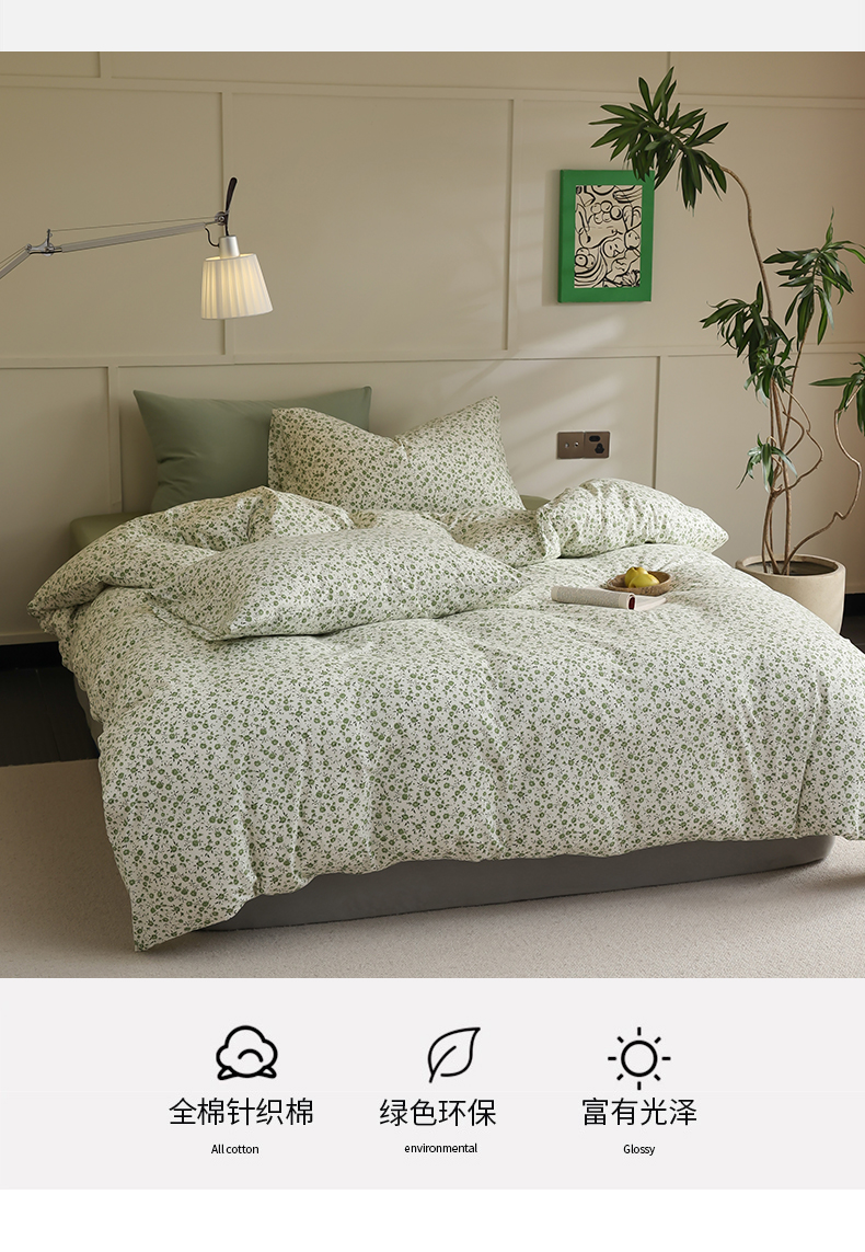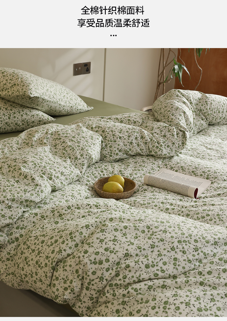 2025春夏新品母婴A类全棉纯棉针织棉软糯糯清新小碎花床单款四件套 秋天绿