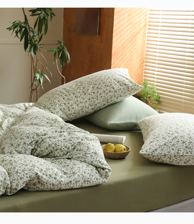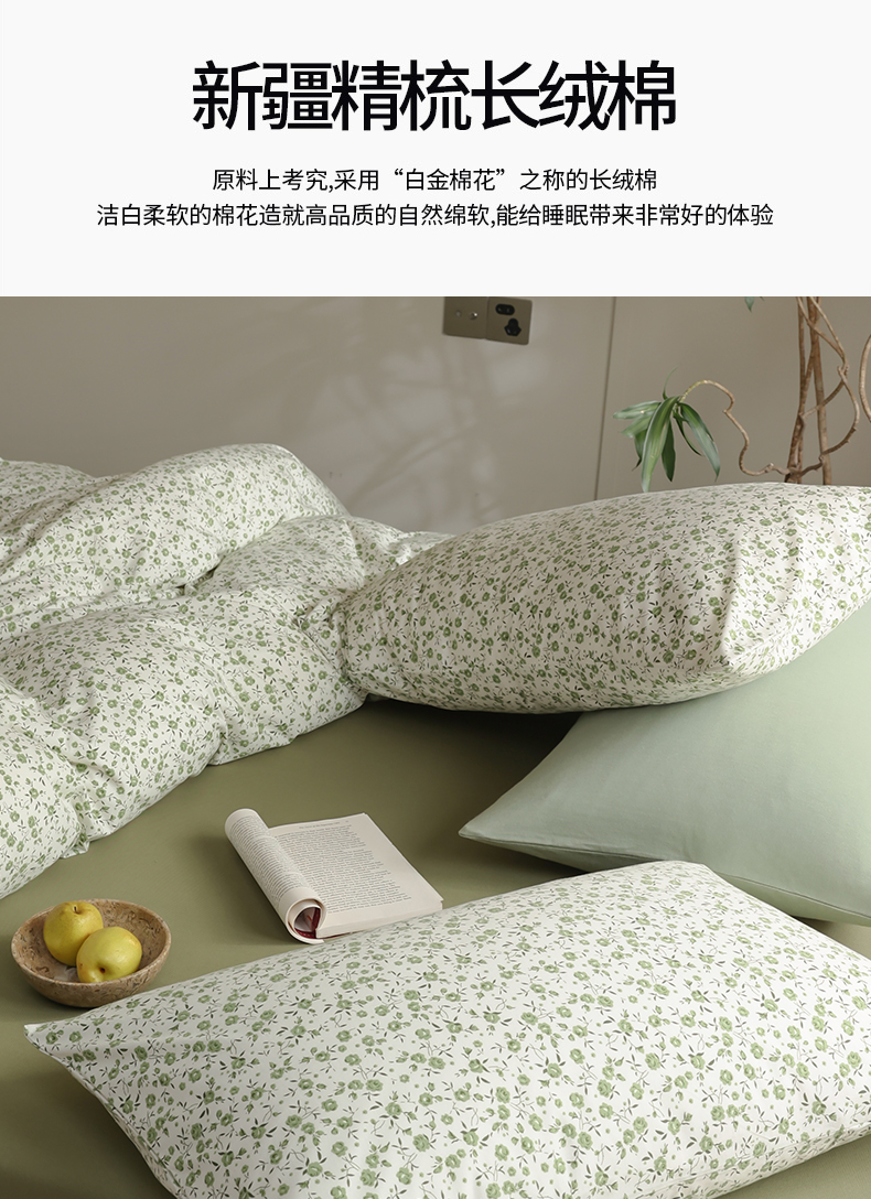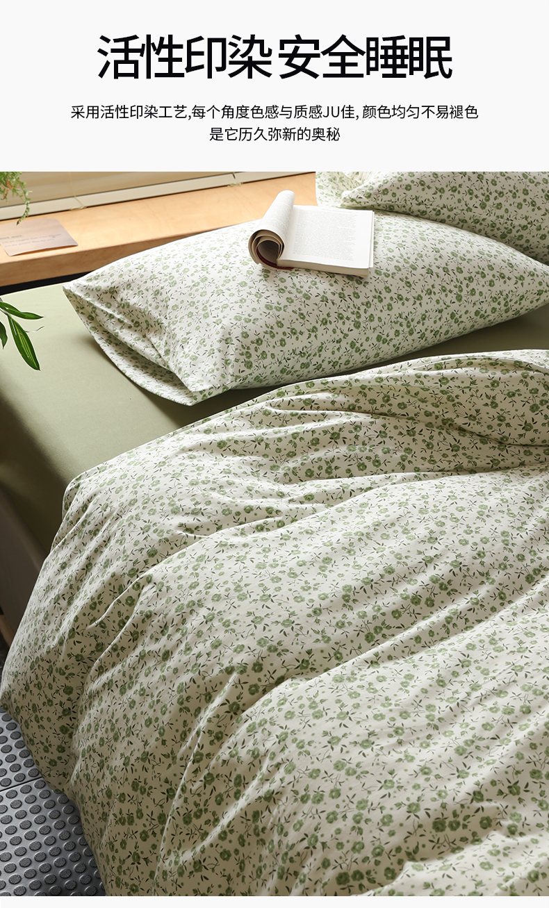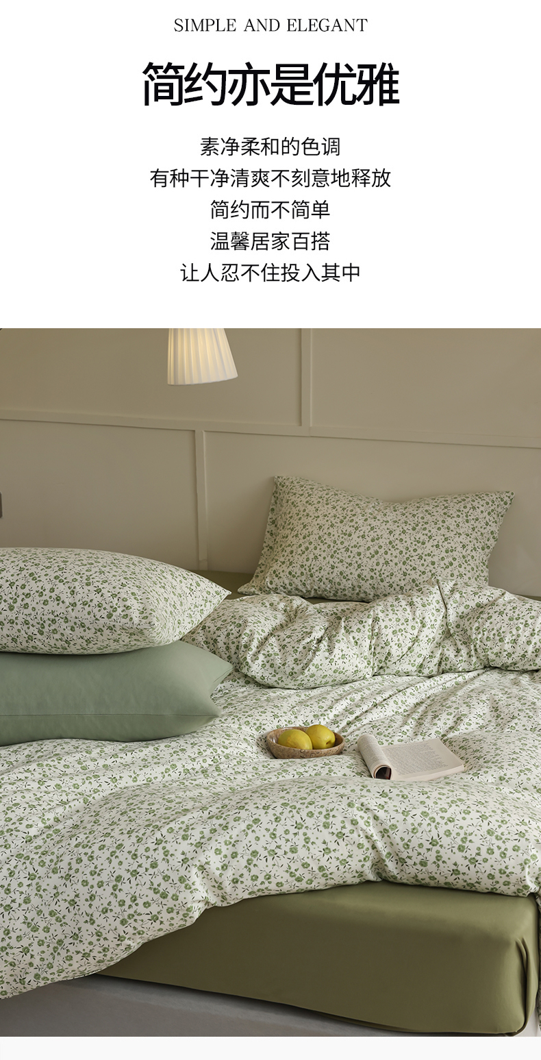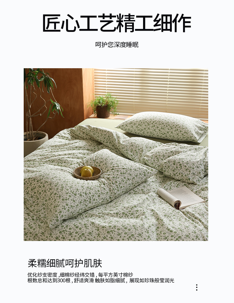 2025春夏新品母婴A类全棉纯棉针织棉软糯糯清新小碎花床单款四件套 秋天绿