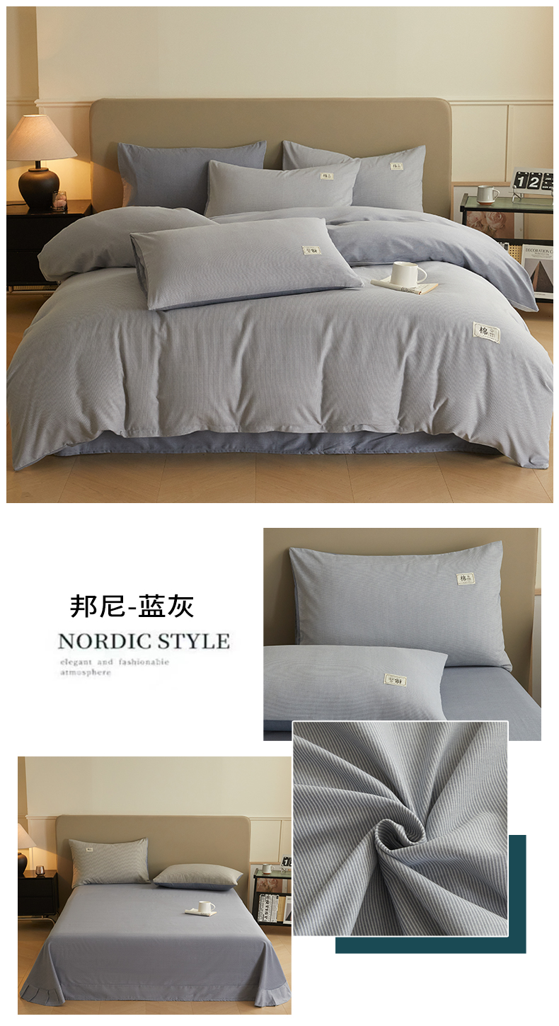 当前位置: 91家纺网 > 商品网购 > 床品套件 > 四件套 > 普通磨毛四件套 > 悦织湾家纺 2025春秋新款纯色全棉纯棉磨毛四件套床单枕套被套三四件套 邦尼-蓝灰