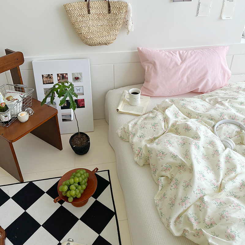 (总)尺素 2026田园小清新纯棉四件套出口韩国ins博主风全棉被套纯色加大床单1.8床笠印花枕套学生宿舍三件套,春不晚 桃粉,花似锦 奶白,紫鸢千夏紫