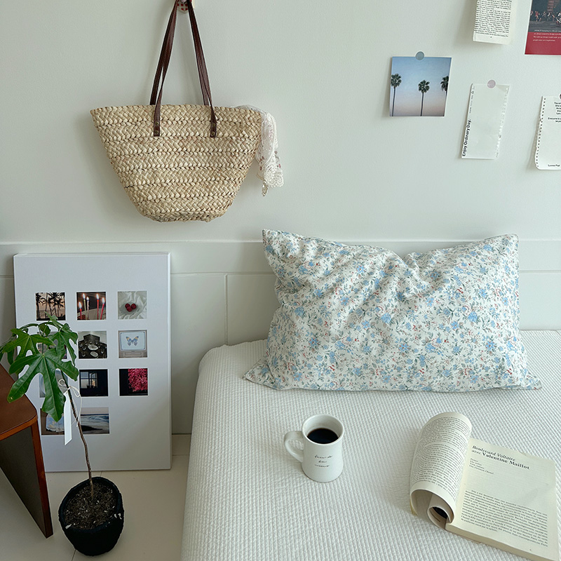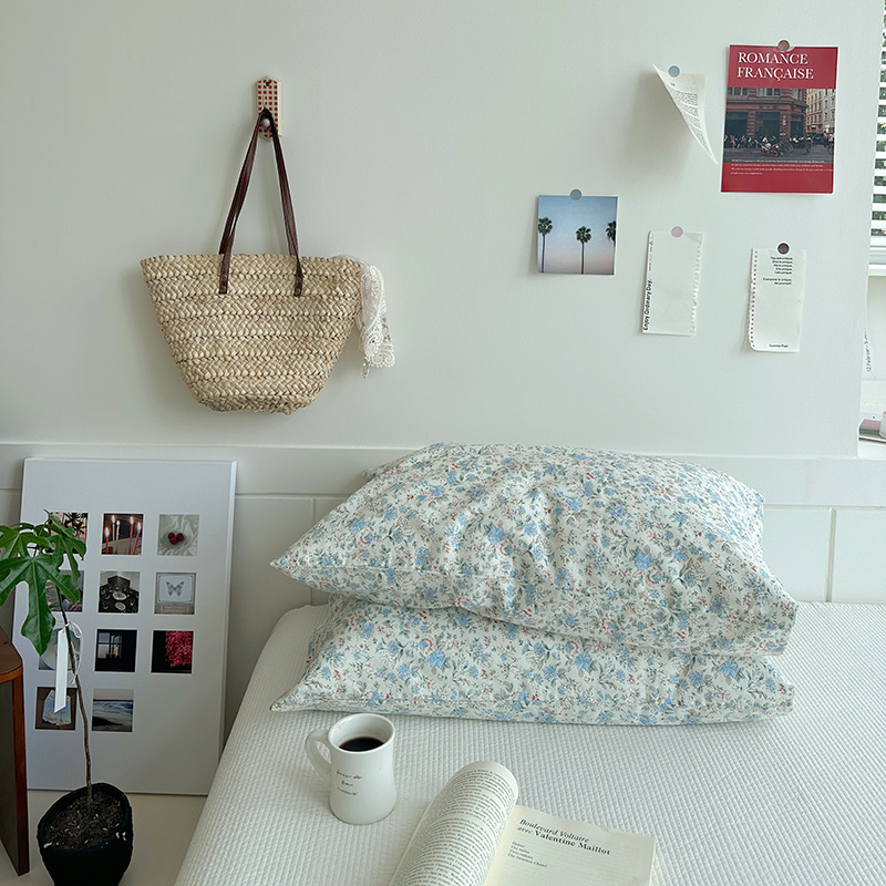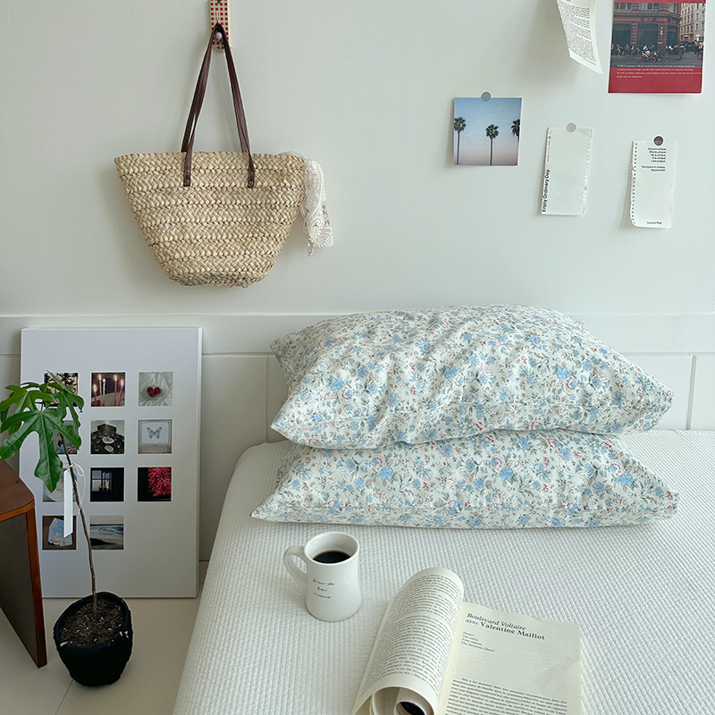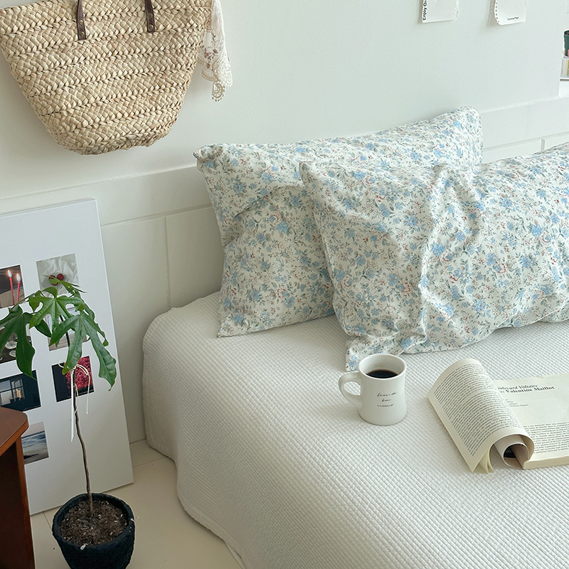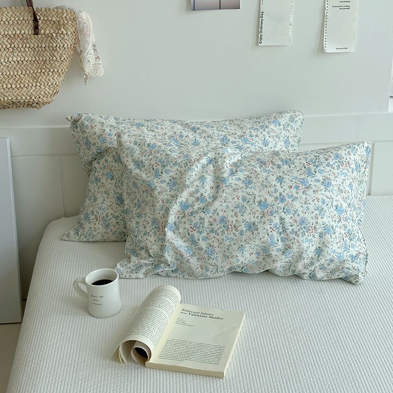 商品名称:2025新款纯棉小清新小碎花学生枕套 蓝莓厚乳 象牙白