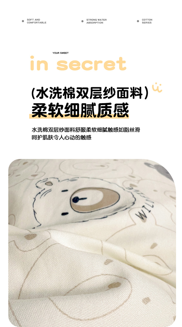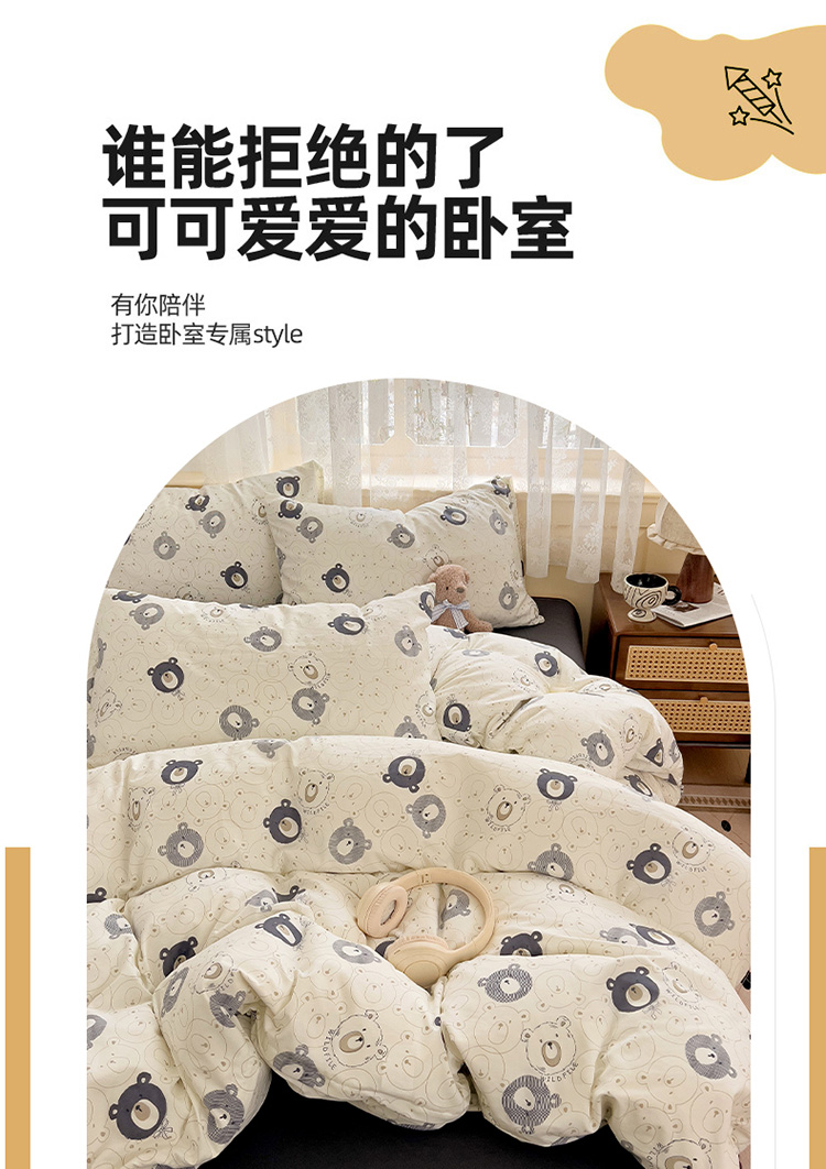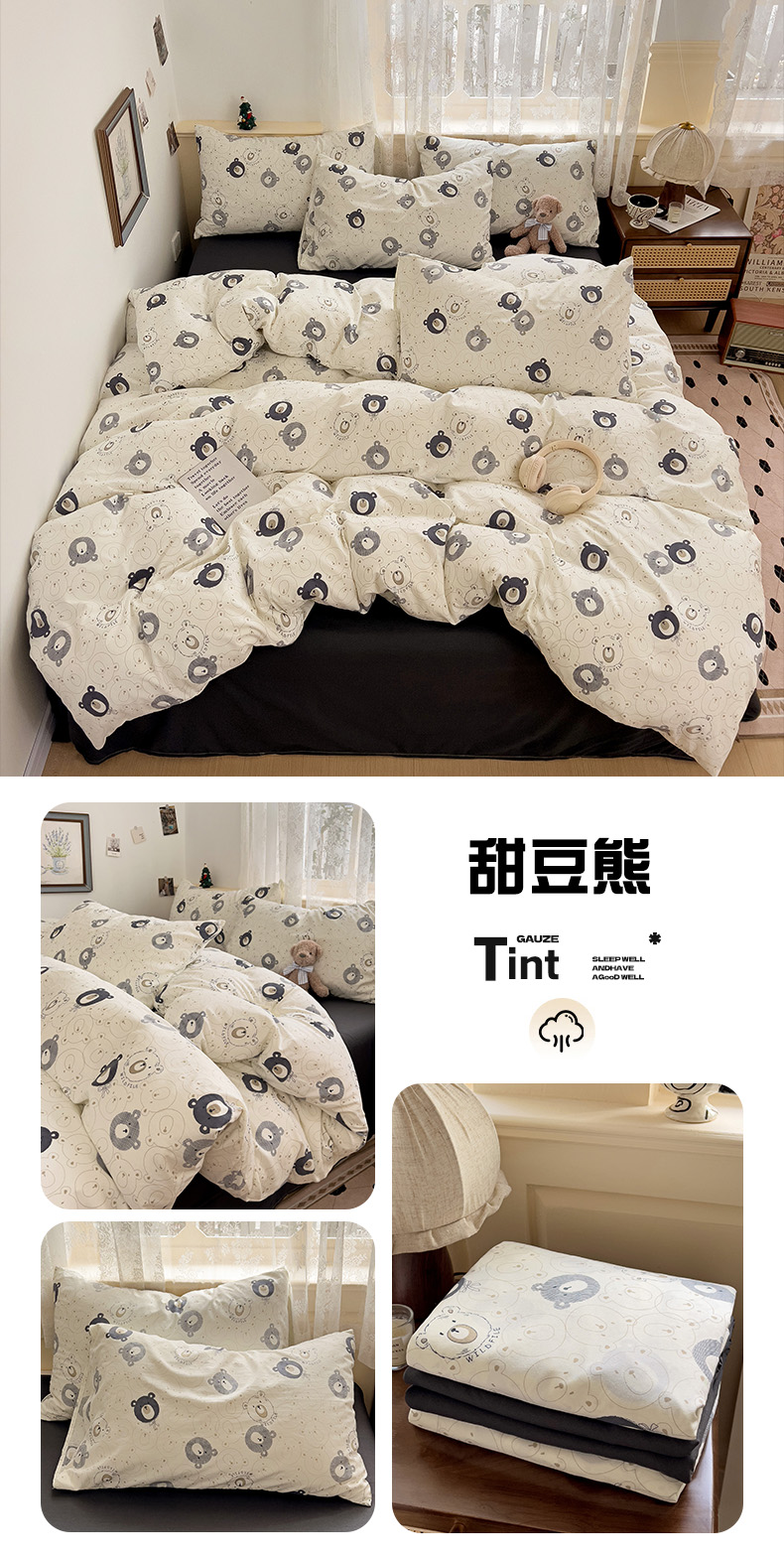 当前位置: 91家纺网 > 商品网购 > 床品套件 > 四件套 > 其它四件套 > 夜笙2025新款A类水洗棉双层纱印花四件套 甜豆熊