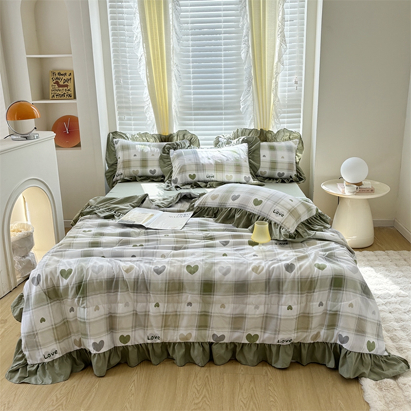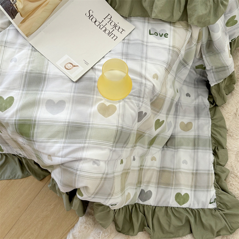 仟网汇 2025新款韩版糯糯棉花边夏被四件套田园法式 格调爱心