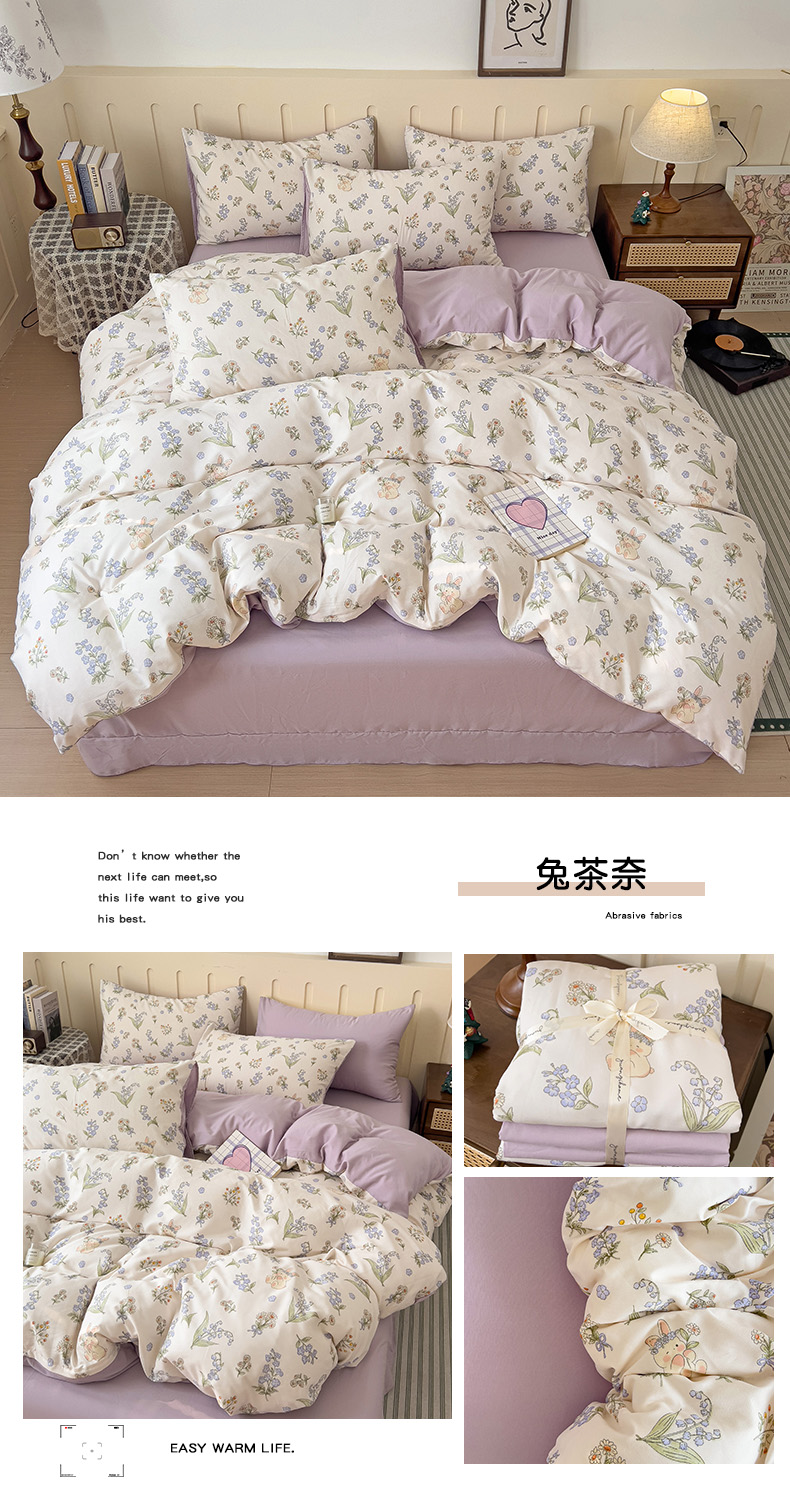 商品名称:金梦拉家纺 2025爆款新款A类加厚有氧针织棉双层纱四件套(吊边版)兔茶奈