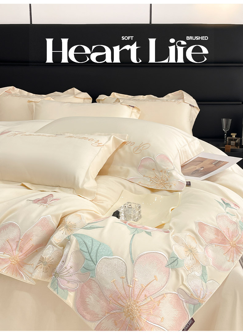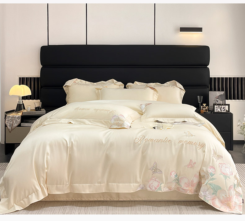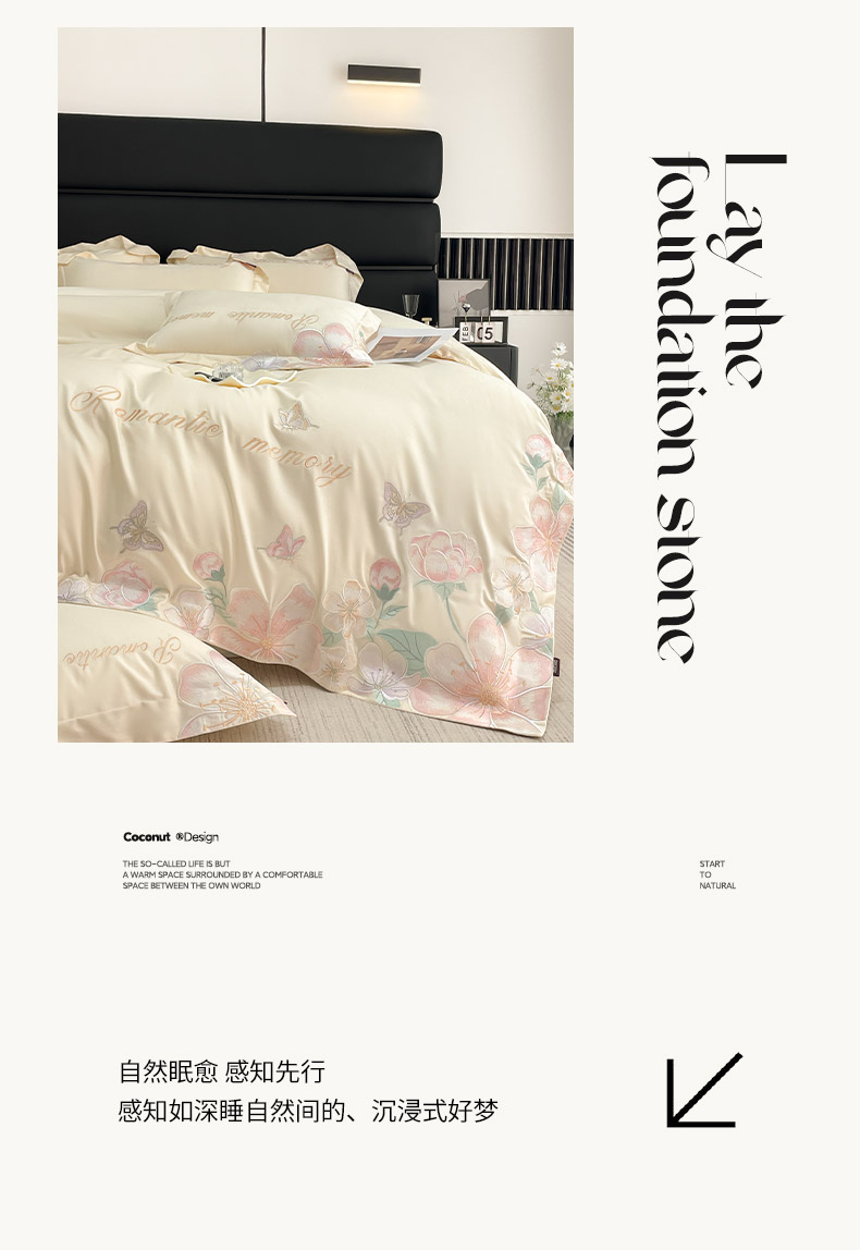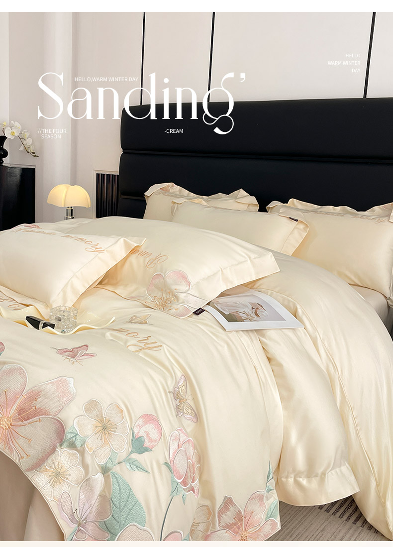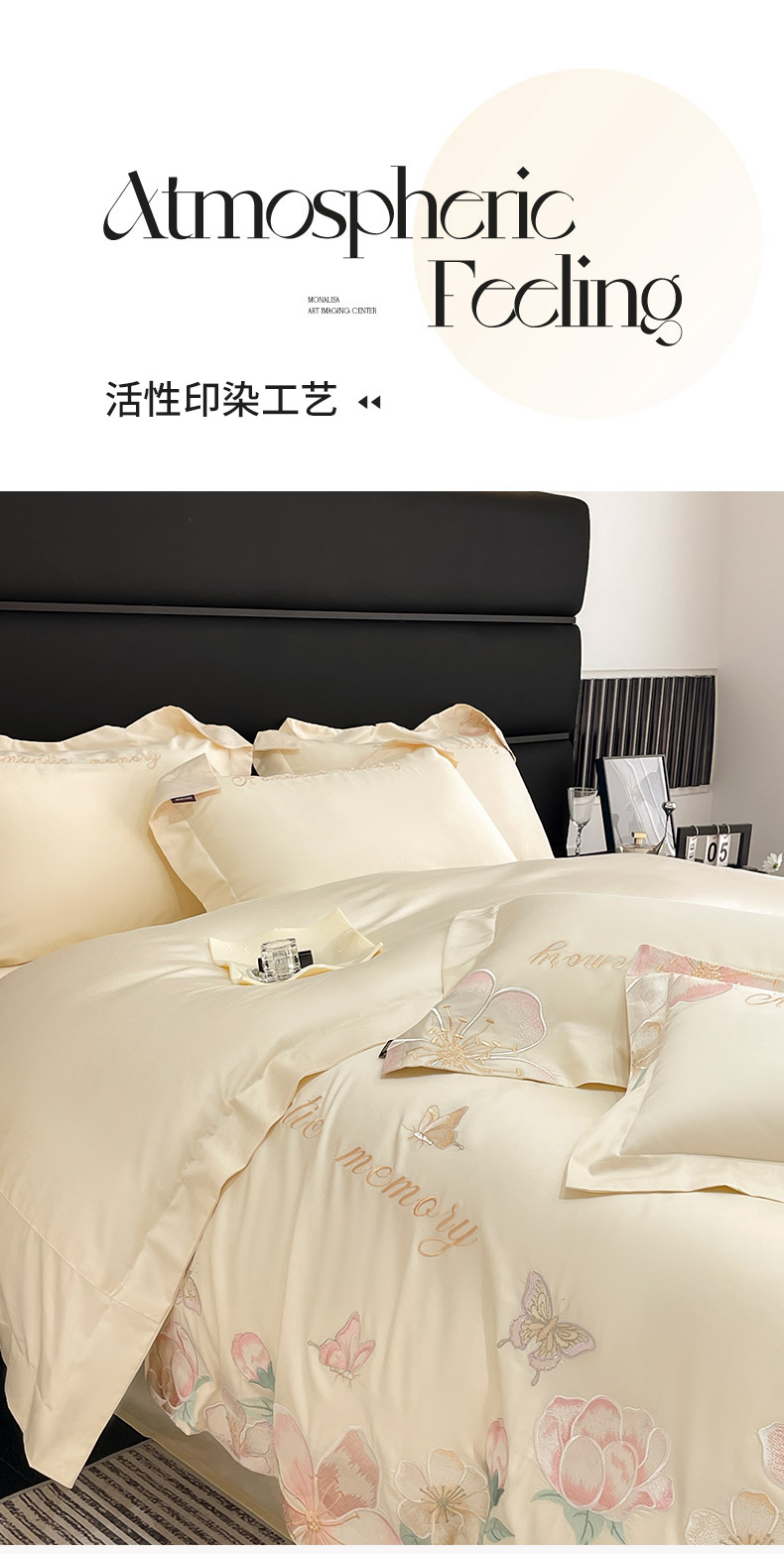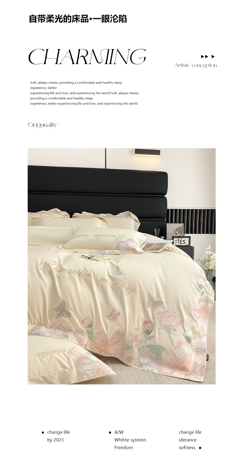 2025春夏A类100支长绒棉四件套纯棉全棉轻奢风床单被套重工刺绣床上用品-花漫屿 花漫屿-奶玉