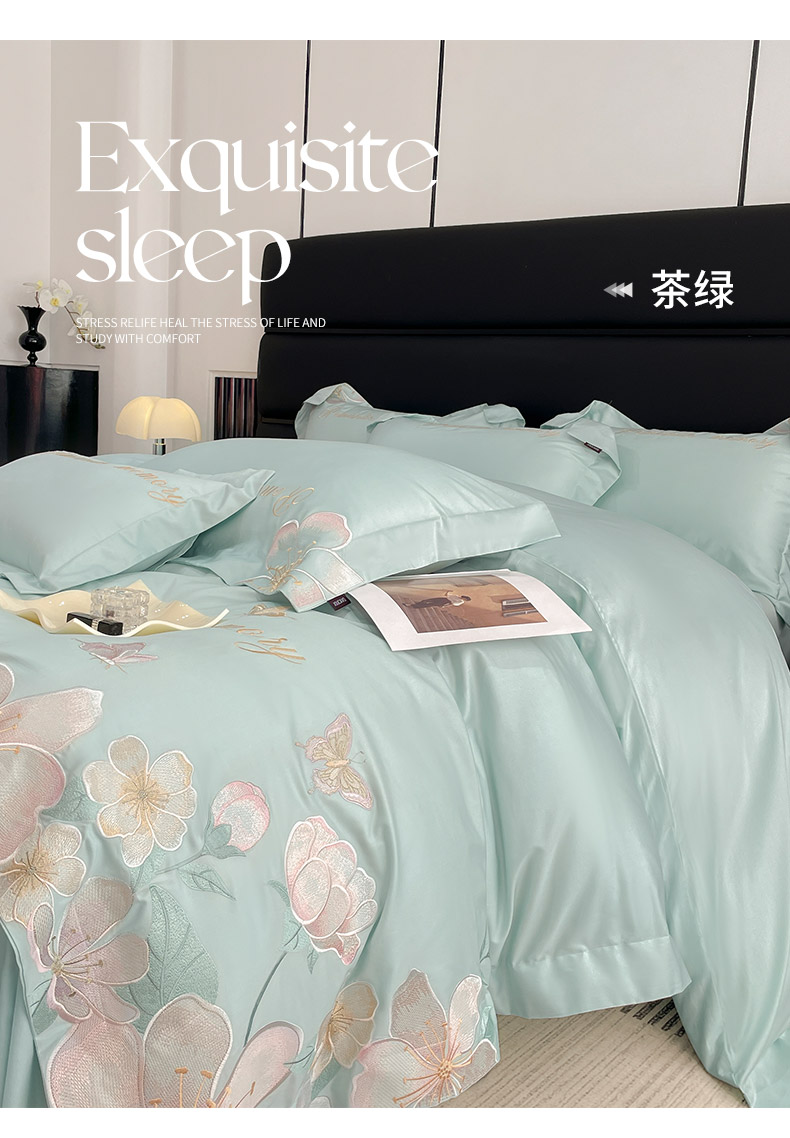 (总)乔利卡沃 2025新款直播爆款A类加厚保暖全棉纯棉磨毛四件套纯棉重工刺绣被套冬季床上用品,绮影-冰清绿,绮影-初恋粉,绮影-美人杏,绮影-时尚灰,绮影-天空蓝,绮影-香芋紫