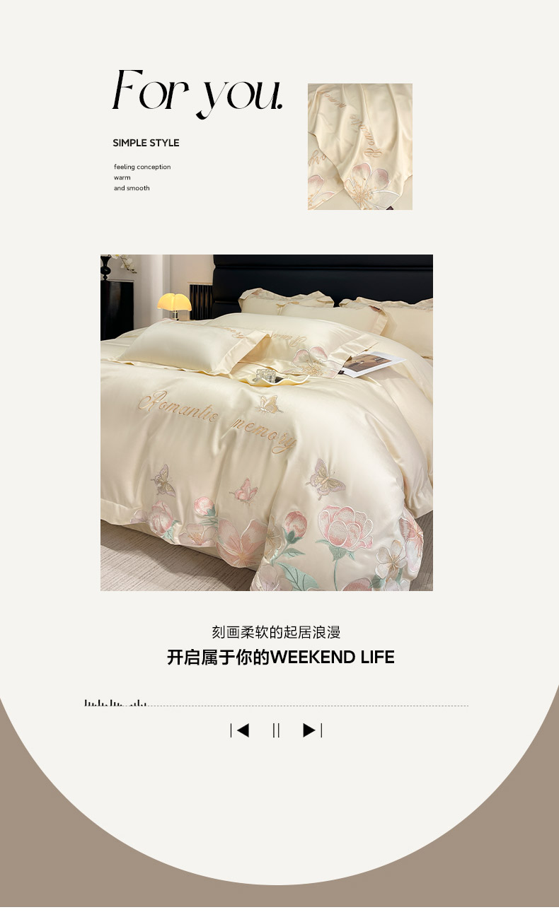 商品名称:2025春夏A类100支长绒棉四件套纯棉全棉轻奢风床单被套重工刺绣床上用品-花漫屿 花漫屿-奶玉