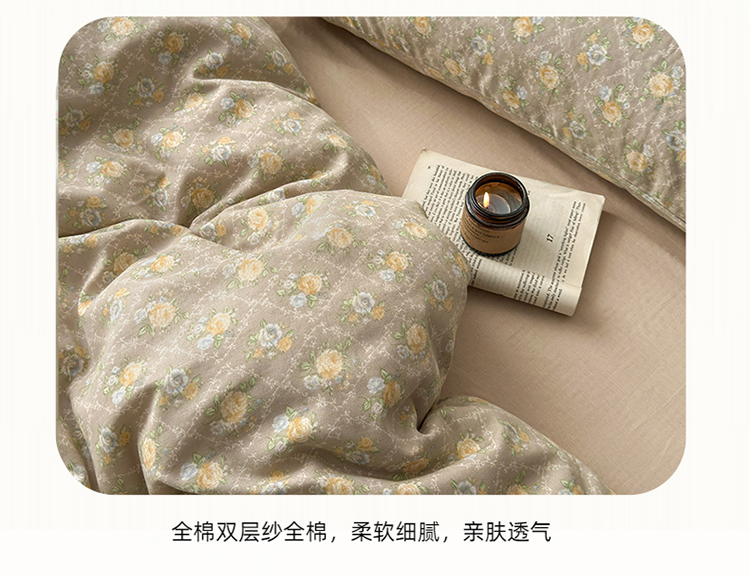 商品名称:2025新款全棉A类双层纱四件套系列-叠拍 写意风情