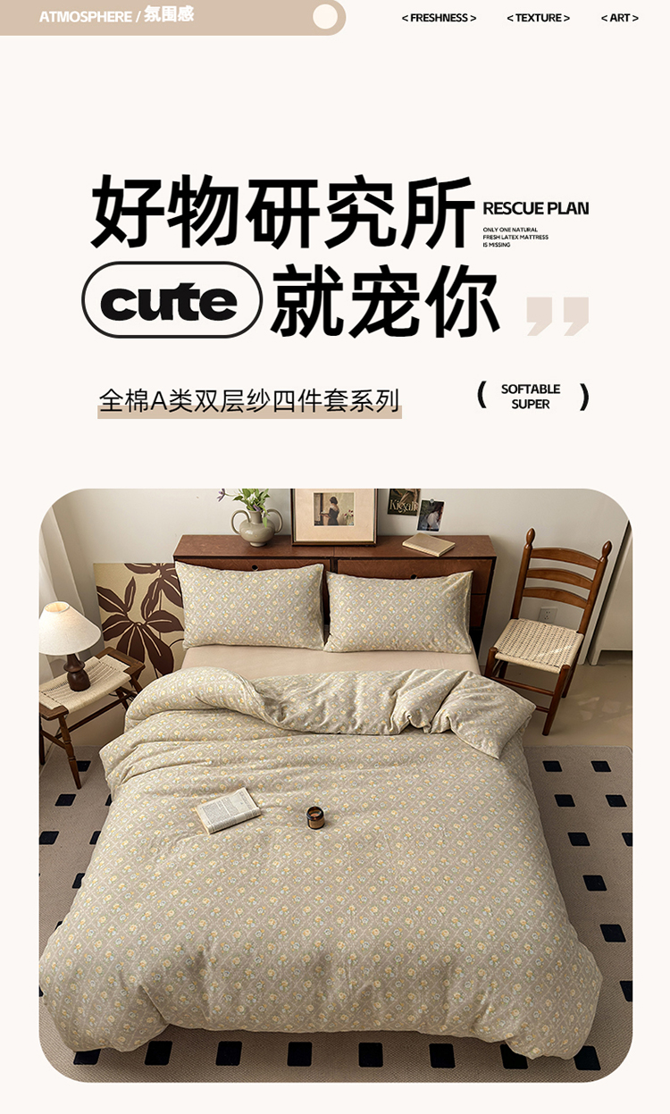 2025新款全棉A类双层纱四件套系列-叠拍 写意风情