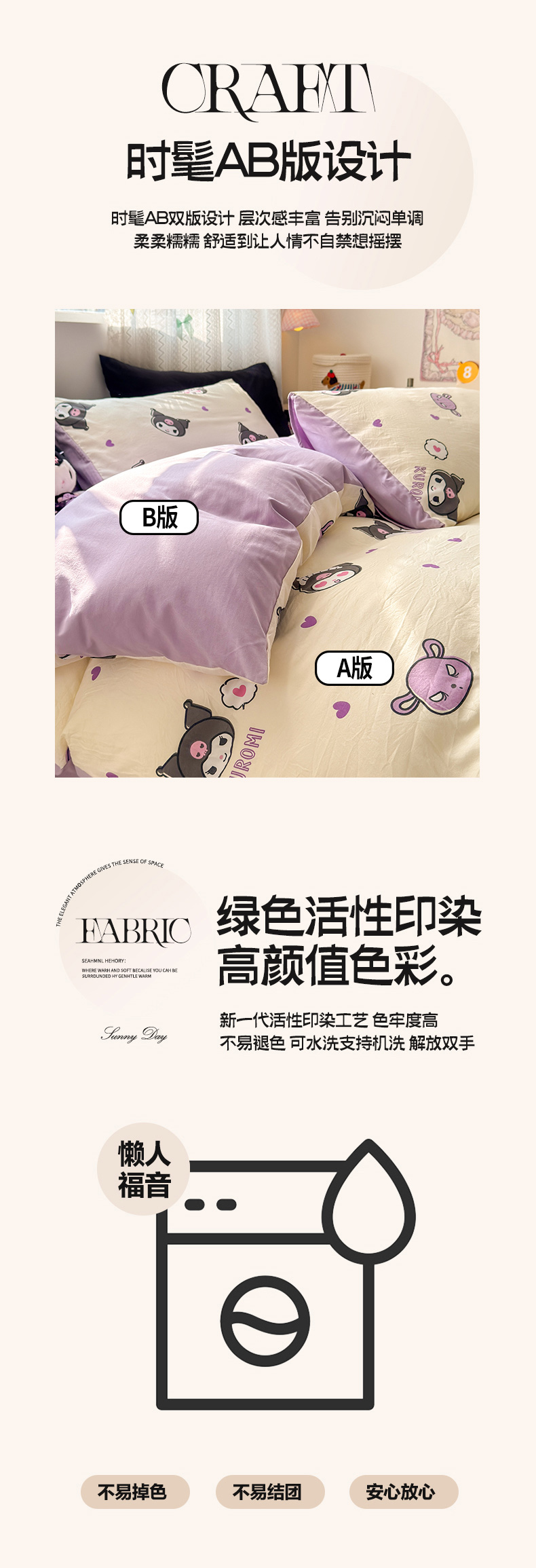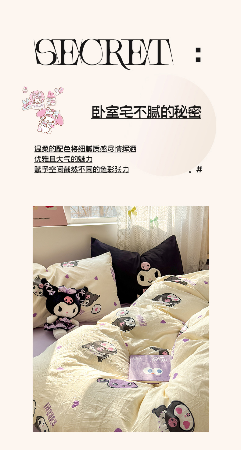 当前位置: 91家纺网 > 商品网购 > 床品套件 > 四件套 > 水洗棉四件套 > 贝扬思家纺 2025新款水洗棉三丽鸥可爱系列四件套 可爱-小黄库洛米