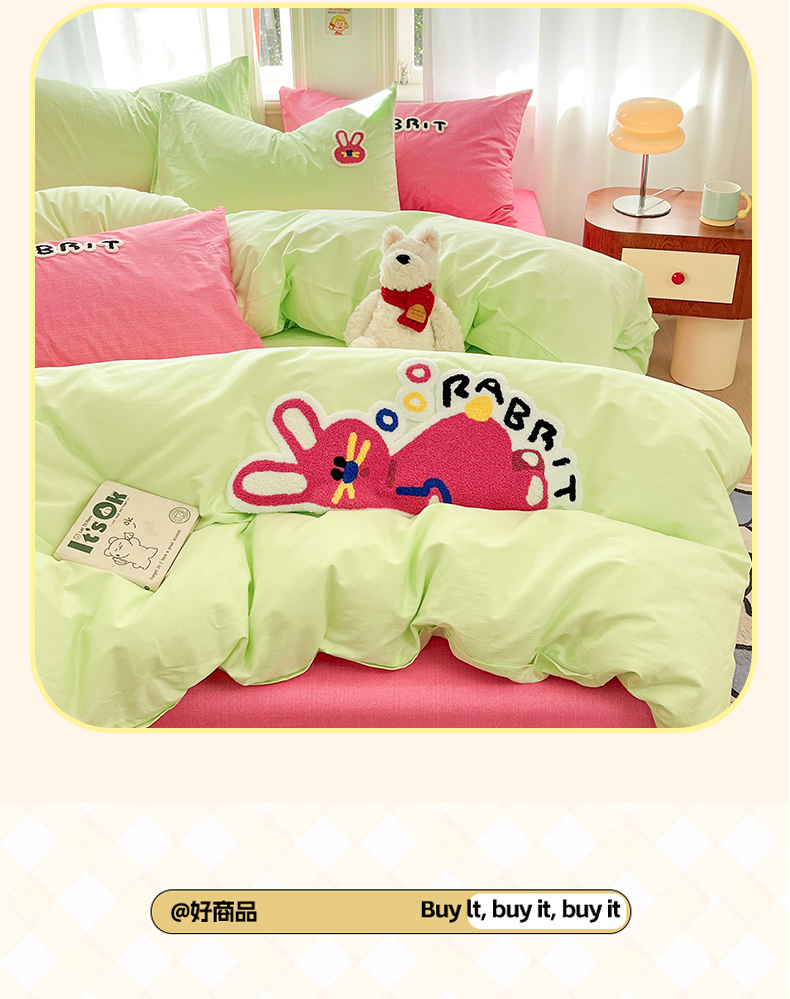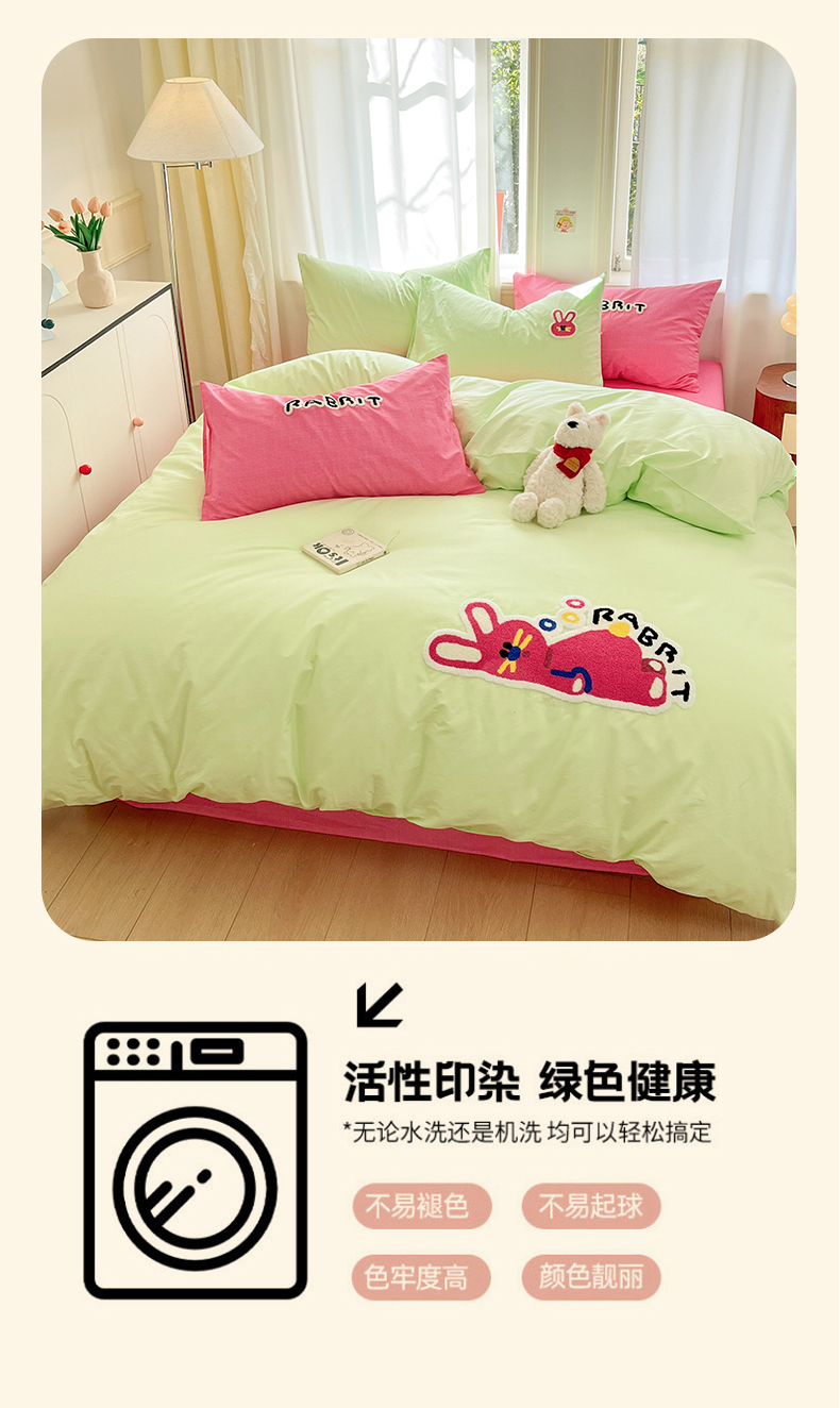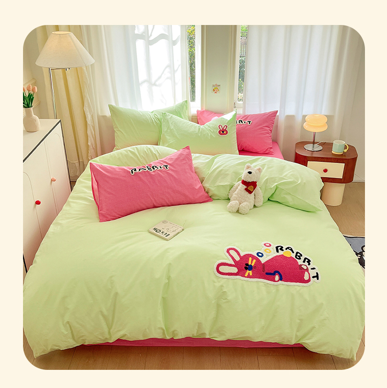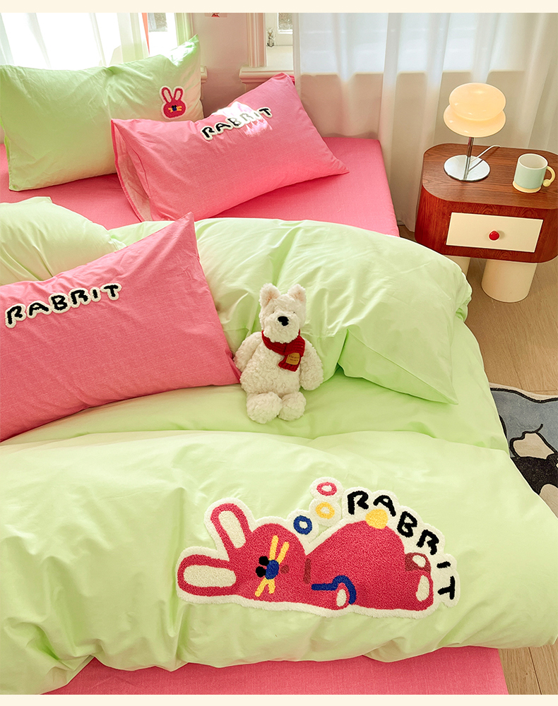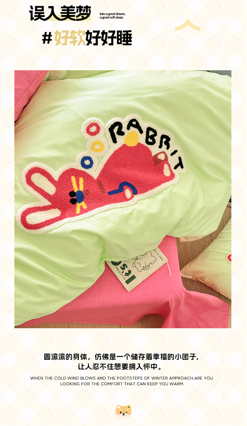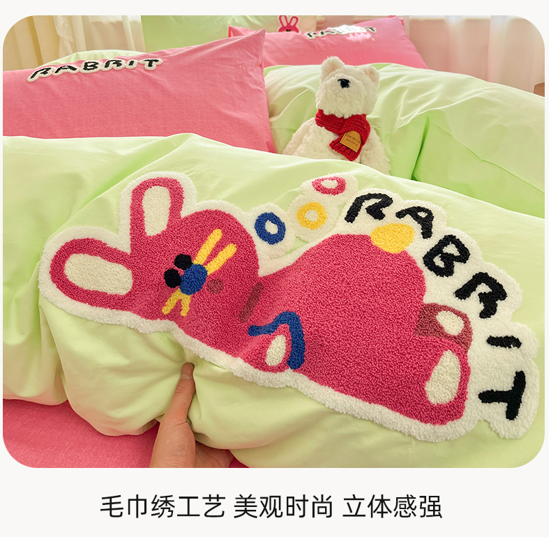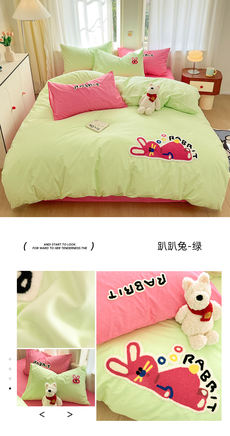 当前位置: 91家纺网 > 商品网购 > 床品套件 > 四件套 > 全棉普通四件套 > 我心家纺 2025新款全棉毛巾绣四件套-趴趴系列 趴趴兔-绿