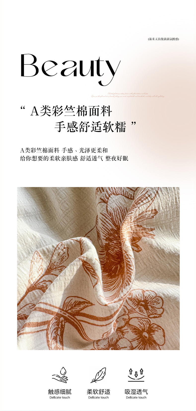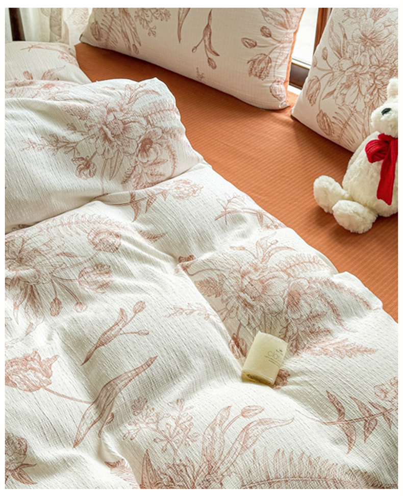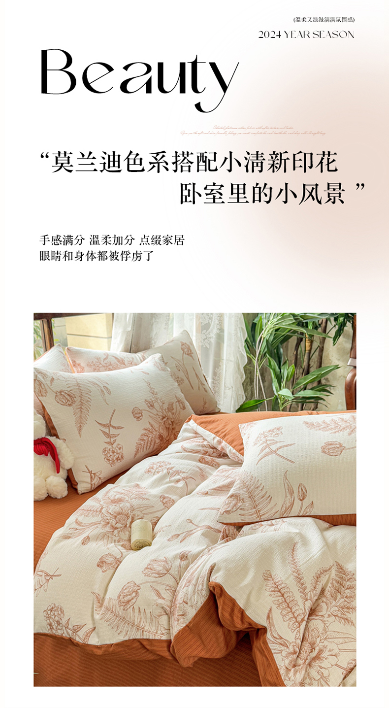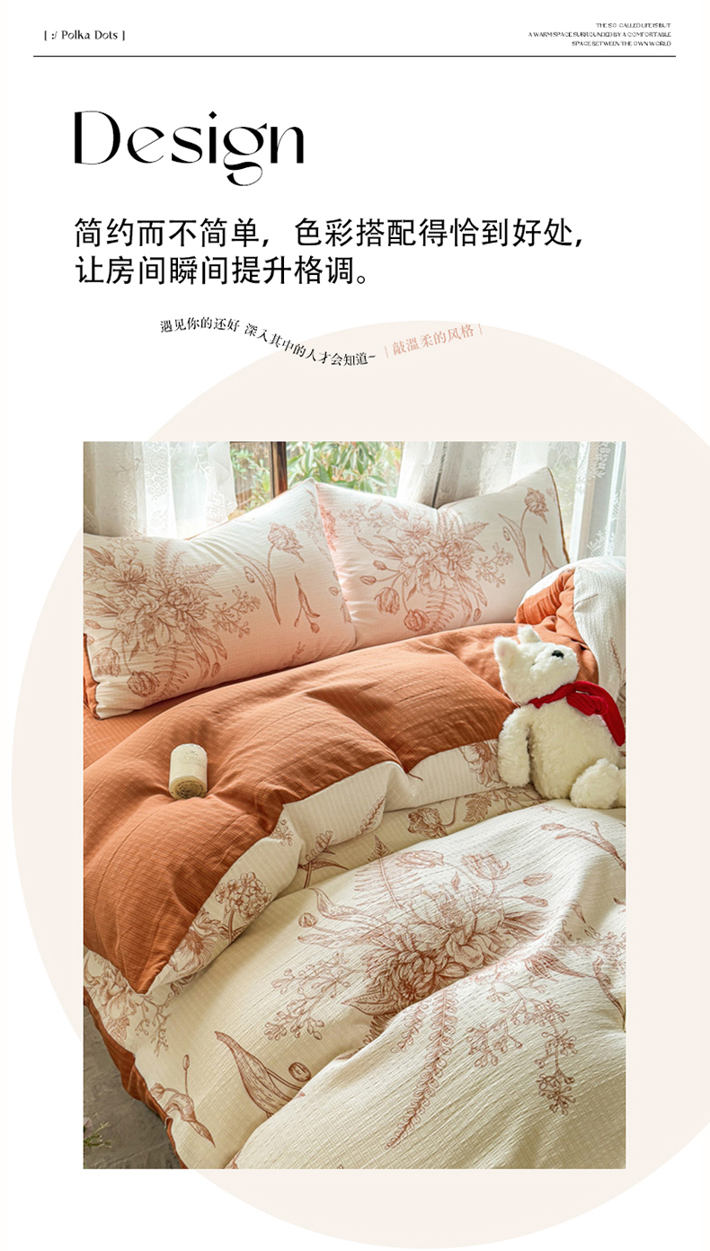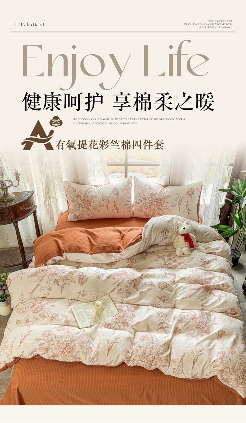 当前位置: 91家纺网 > 商品网购 > 床品套件 > 四件套 > 其它四件套 > 晚爱家纺(原晚安家居) 2025新款A类双层纱有氧提花彩竺棉小竺棉四件套 芳华