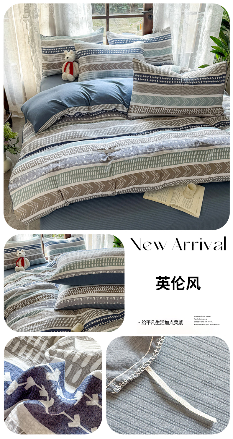 当前位置: 91家纺网 > 商品网购 > 床品套件 > 四件套 > 其它四件套 > 晚爱家纺(原晚安家居) 2025新款A类双层纱有氧提花彩竺棉小竺棉四件套 英伦风