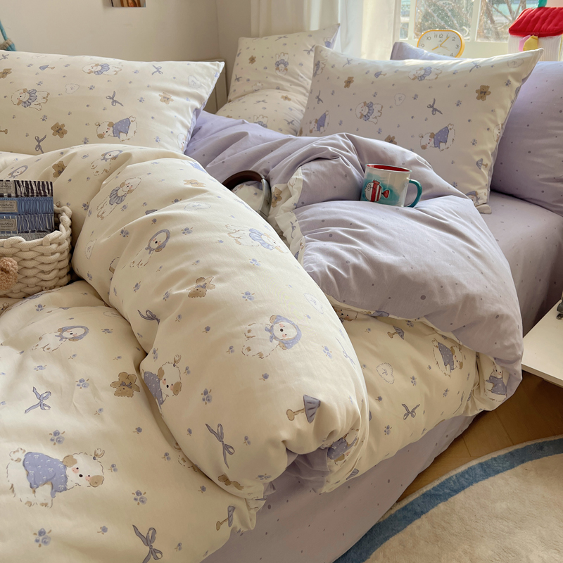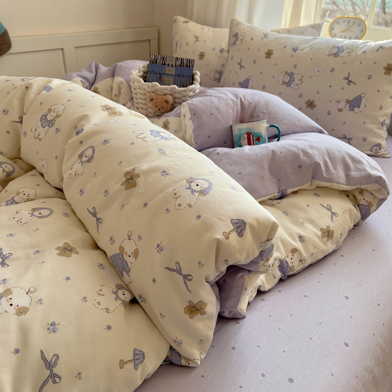 商品名称:桃喜 2025新款春夏全棉卡通13070小清新四件套 幸福日记