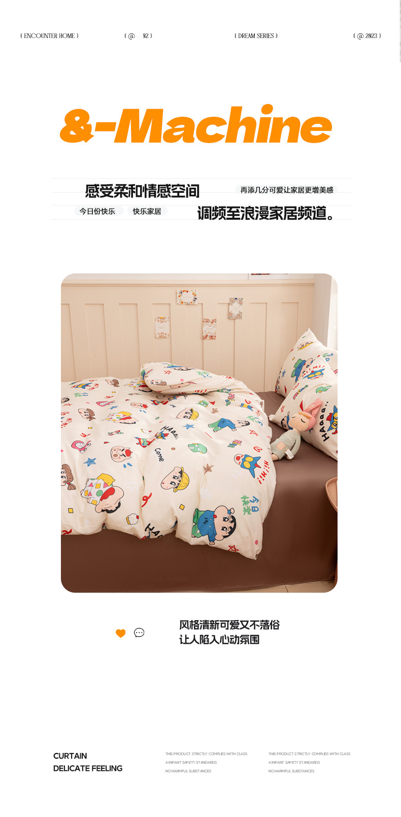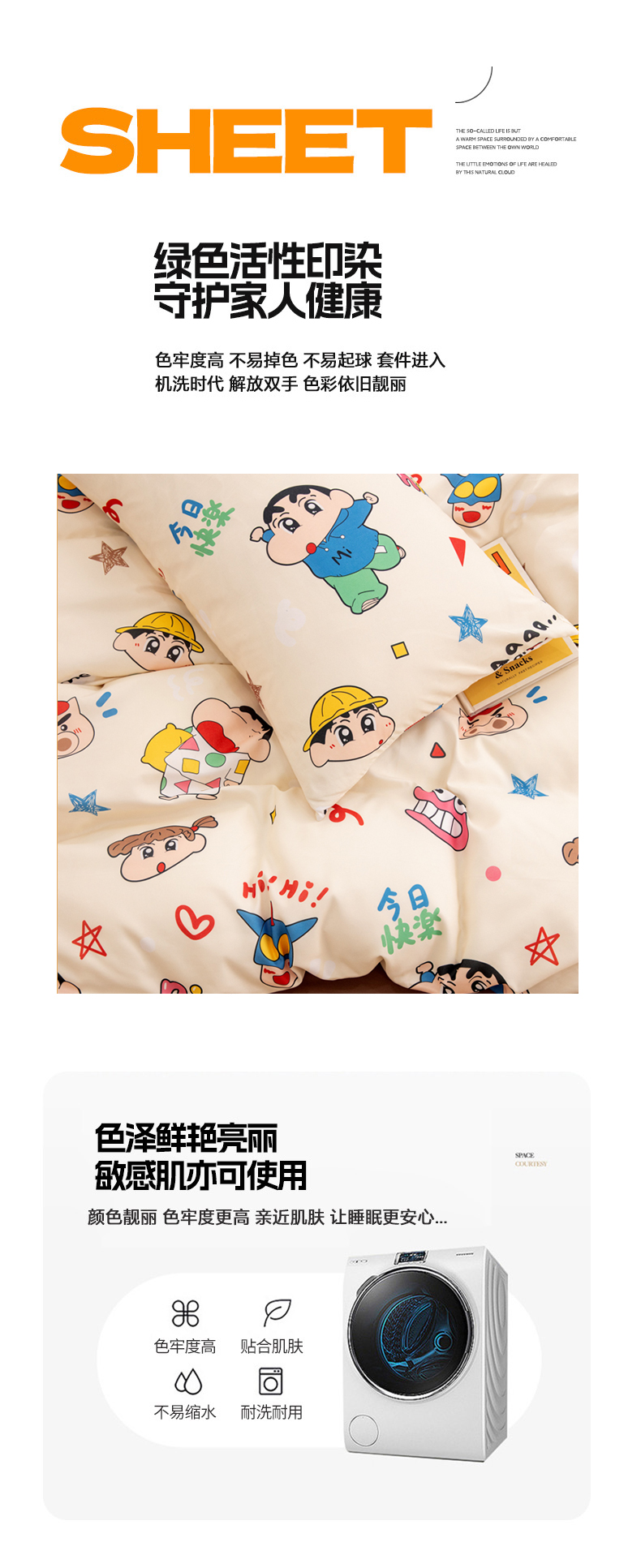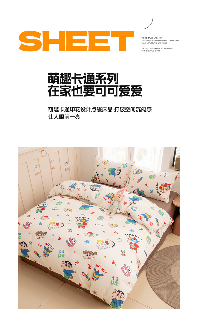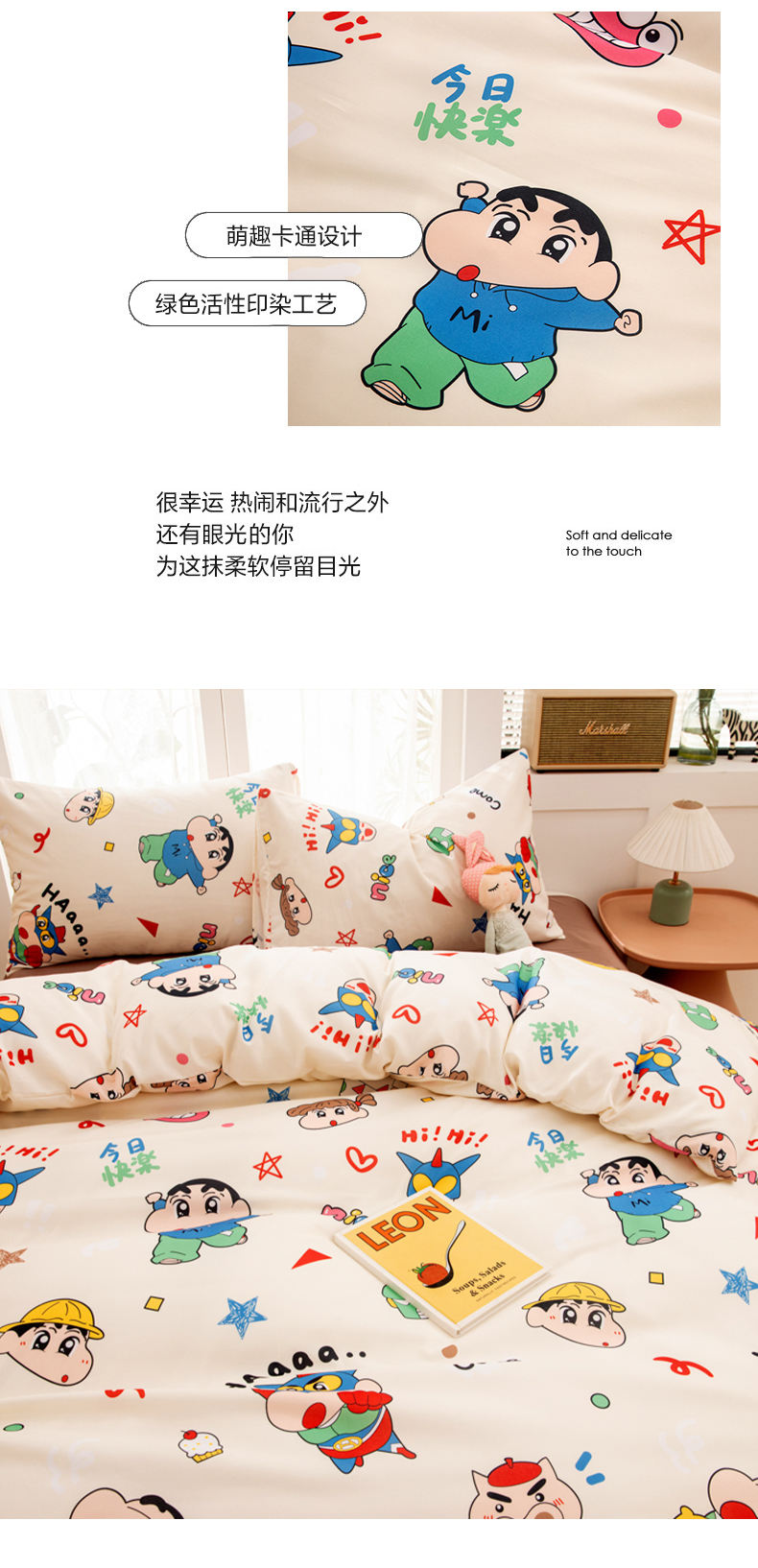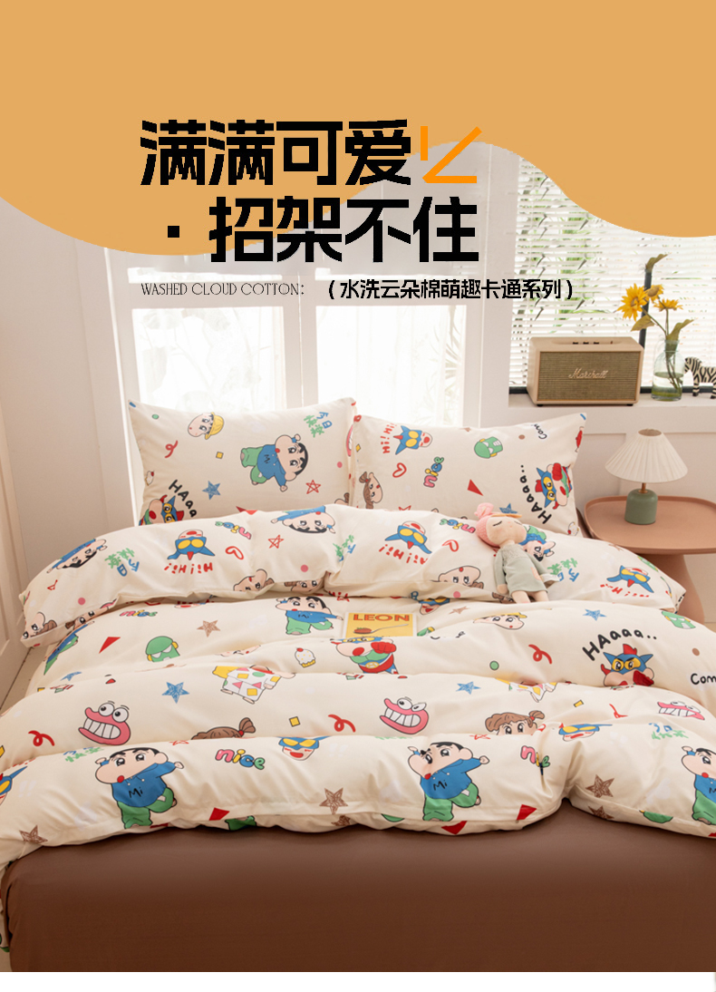 当前位置: 91家纺网 > 商品网购 > 床品套件 > 四件套 > 水洗棉四件套 > 乐居坊 2025新款亲肤舒适A类水洗云朵棉四件套-场景一 可爱小新