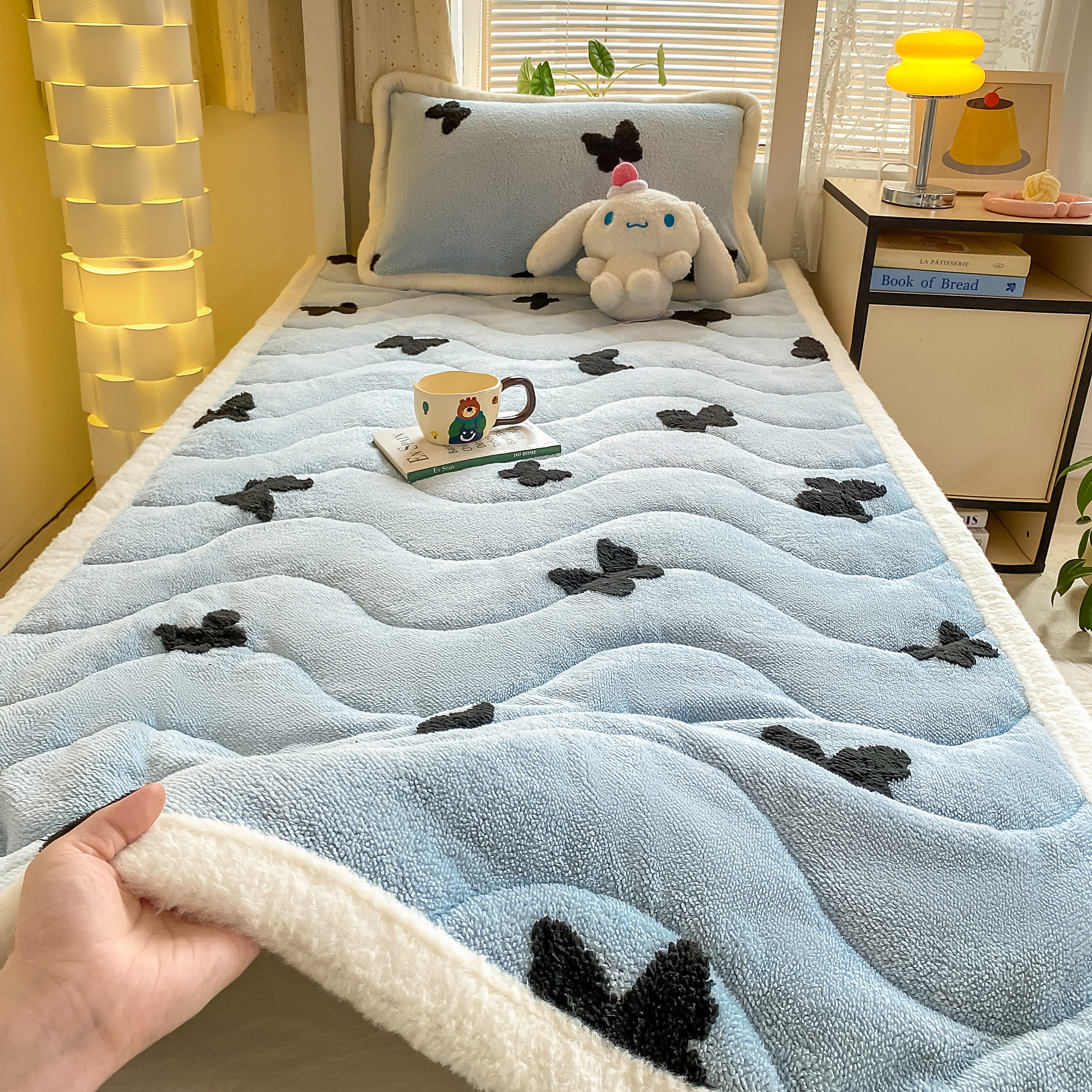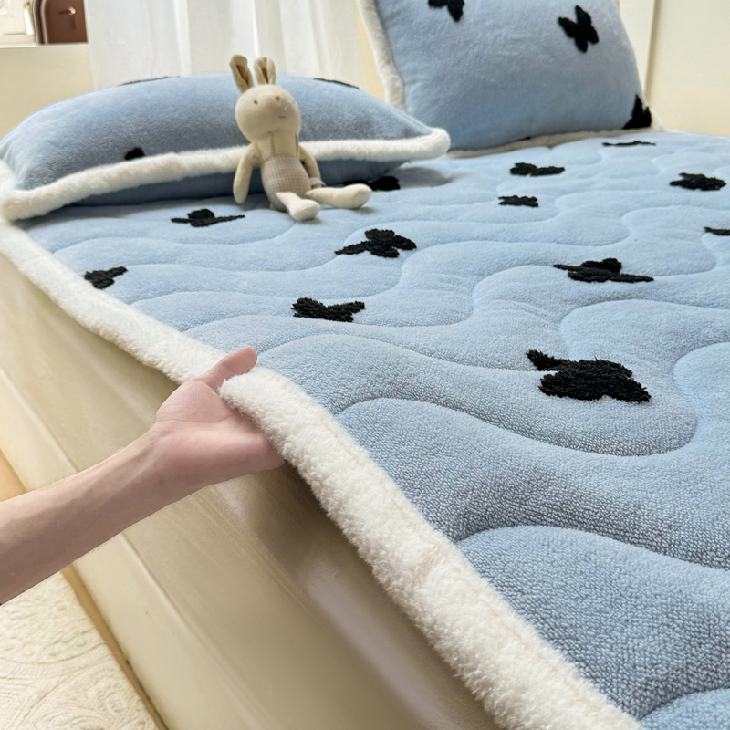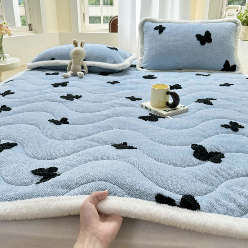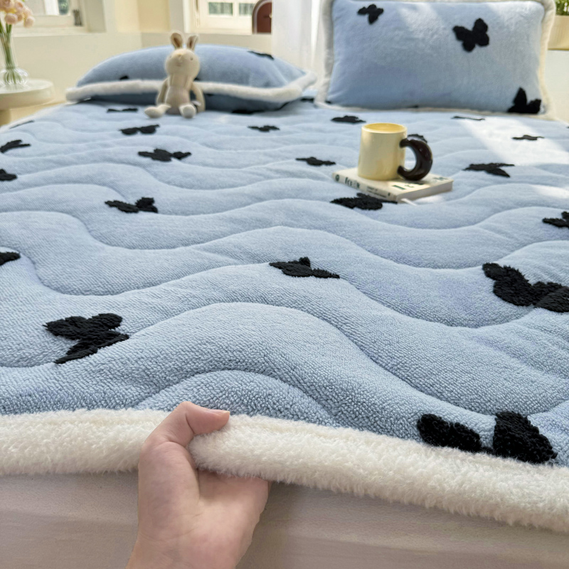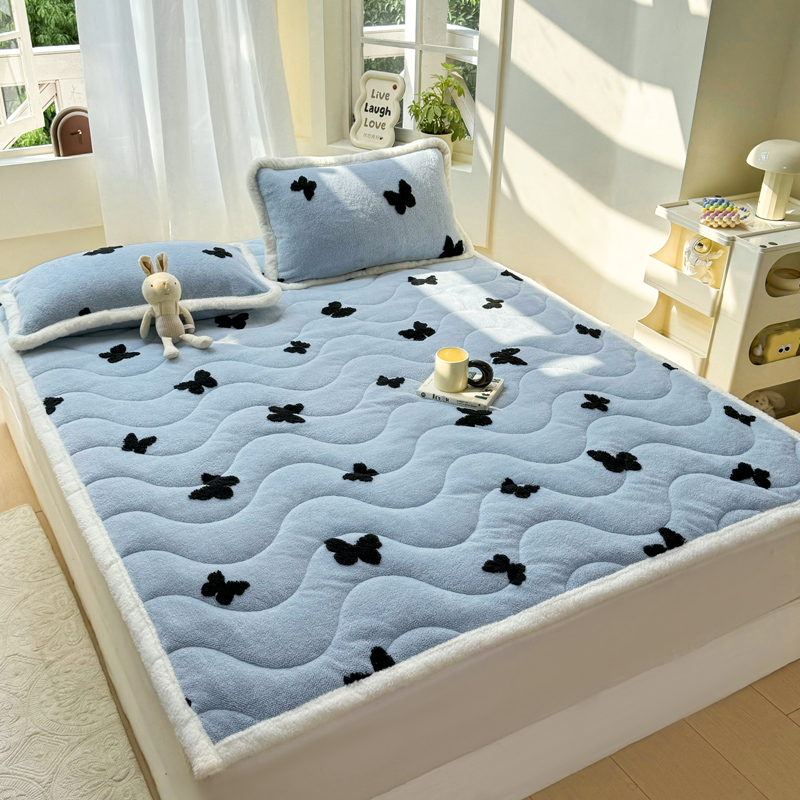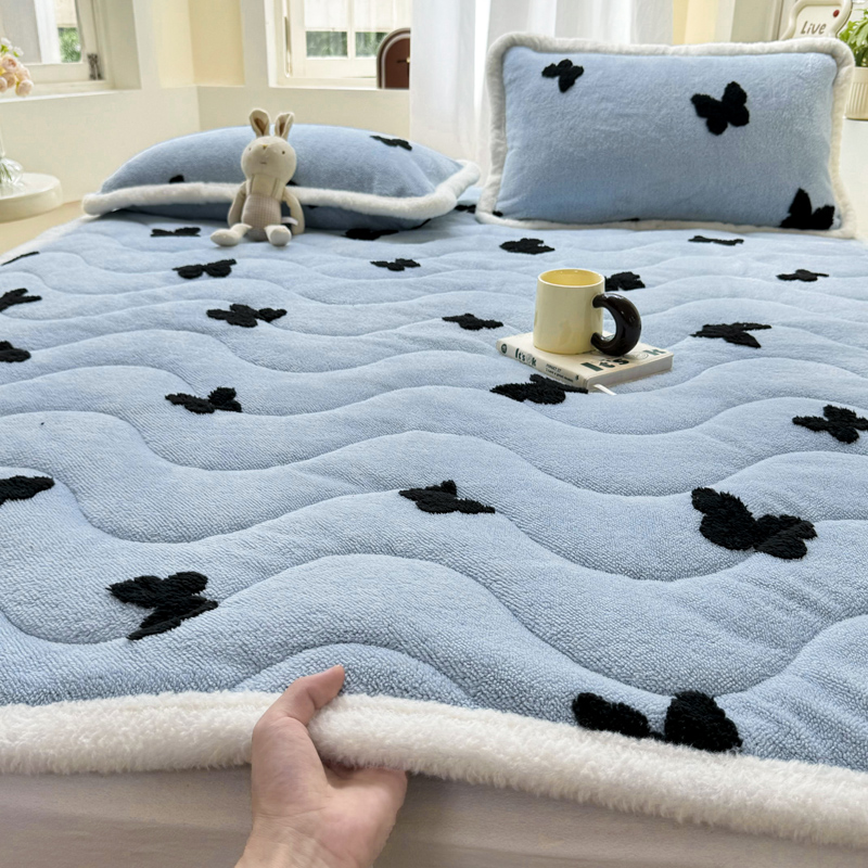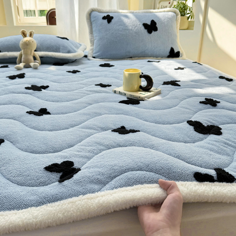 (买家秀 爆款不断货)A类母婴级毛巾绣牛奶绒床垫子刺绣牛奶绒床护垫床褥子雪花绒毛巾绣床垫床褥-学生款 翩翩起舞-蓝