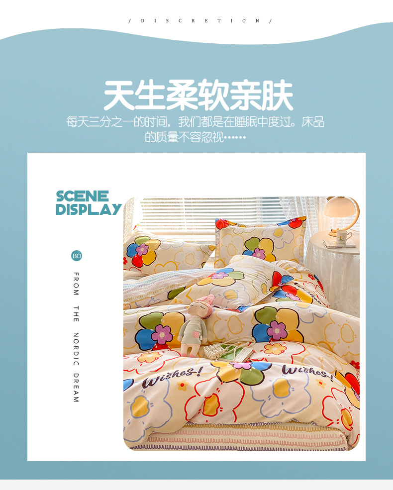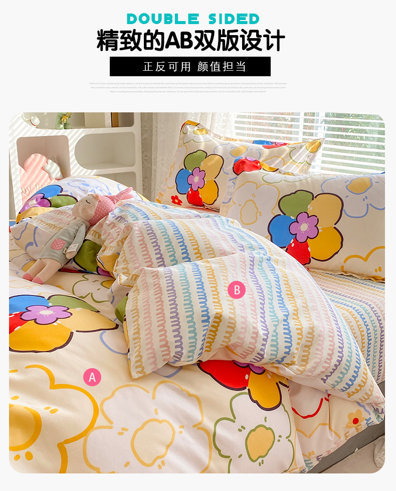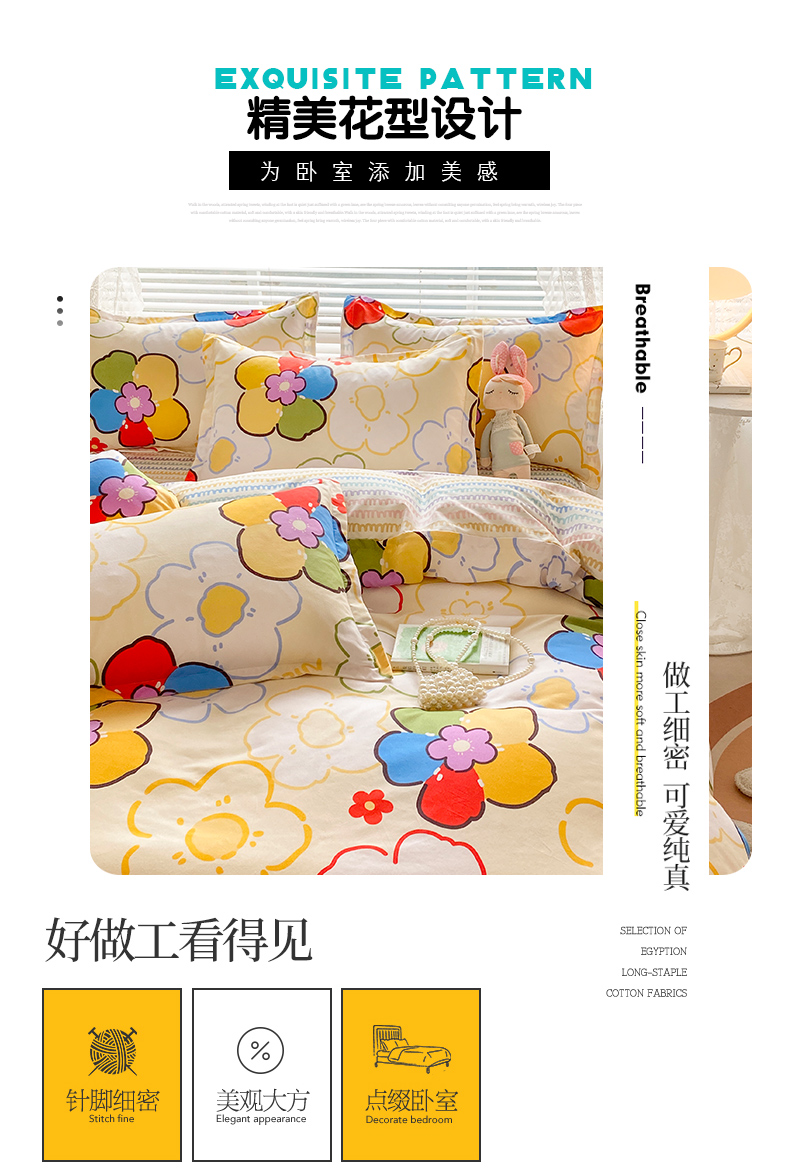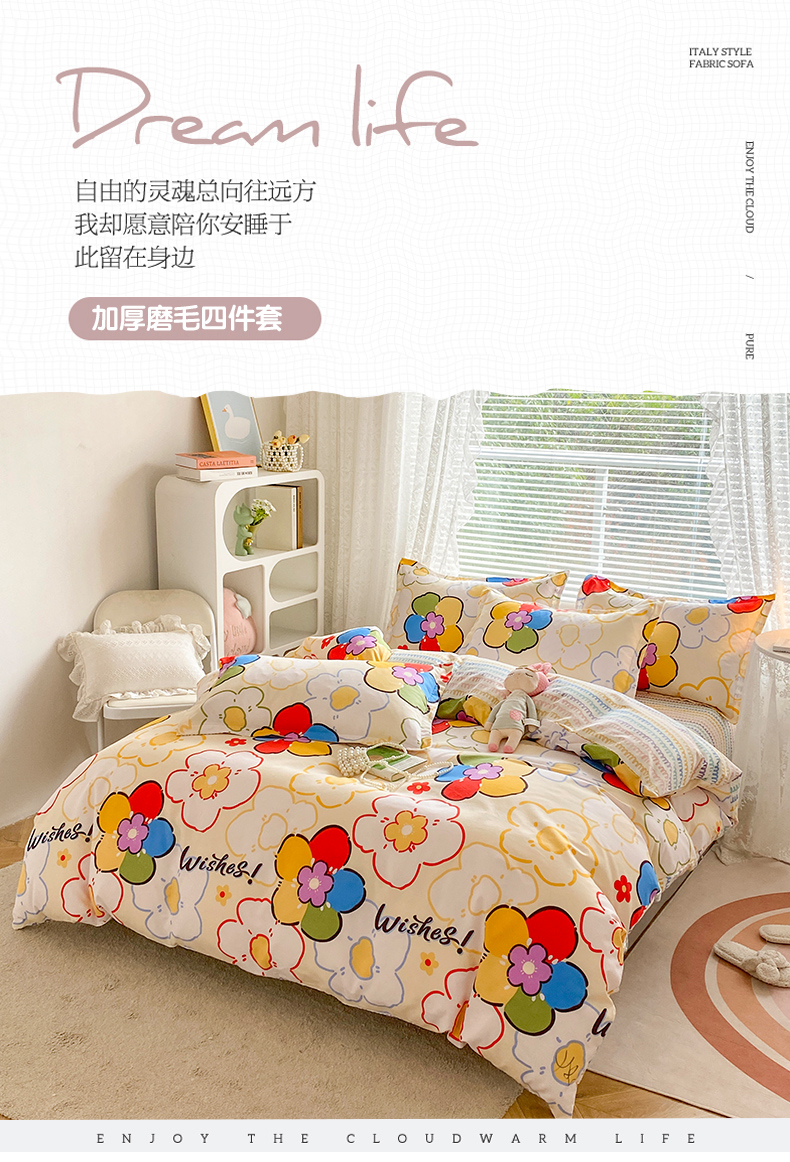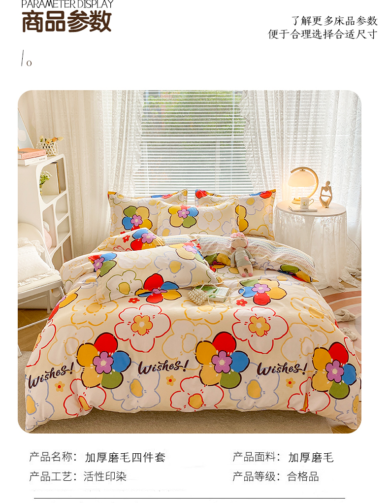 商品名称:(总)(买家秀爆款花色不断货)A类母婴级小清新磨毛四件套简约磨毛四件套花卉磨毛四件套卡通磨毛四件套格子条纹
