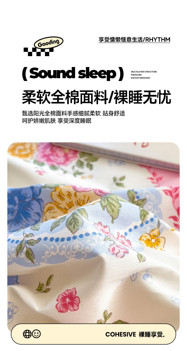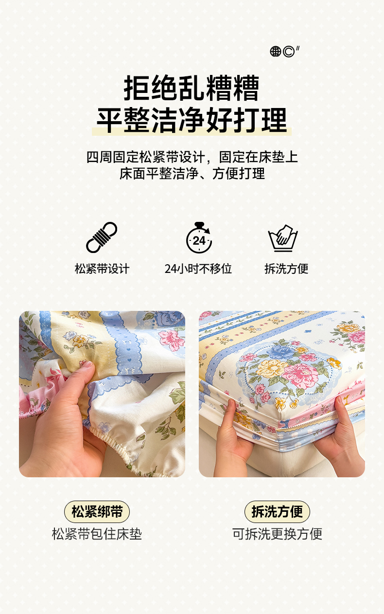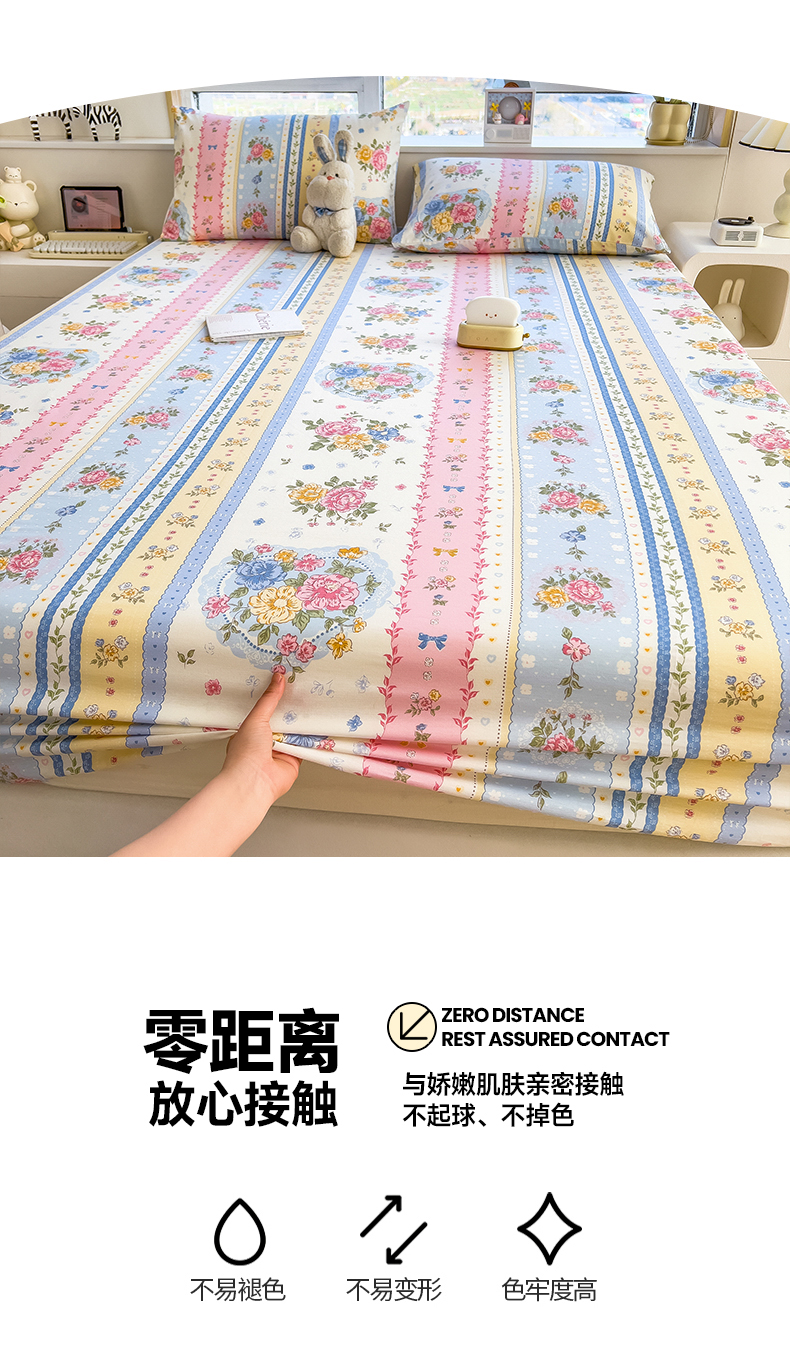 • 91家纺网 家纺一手货源 找家纺 摩妮卡 2025新款A类裸睡级全棉印花床笠系列 花漫屿
